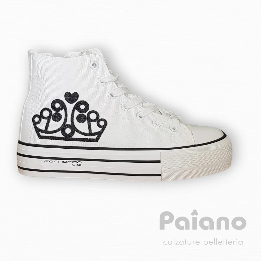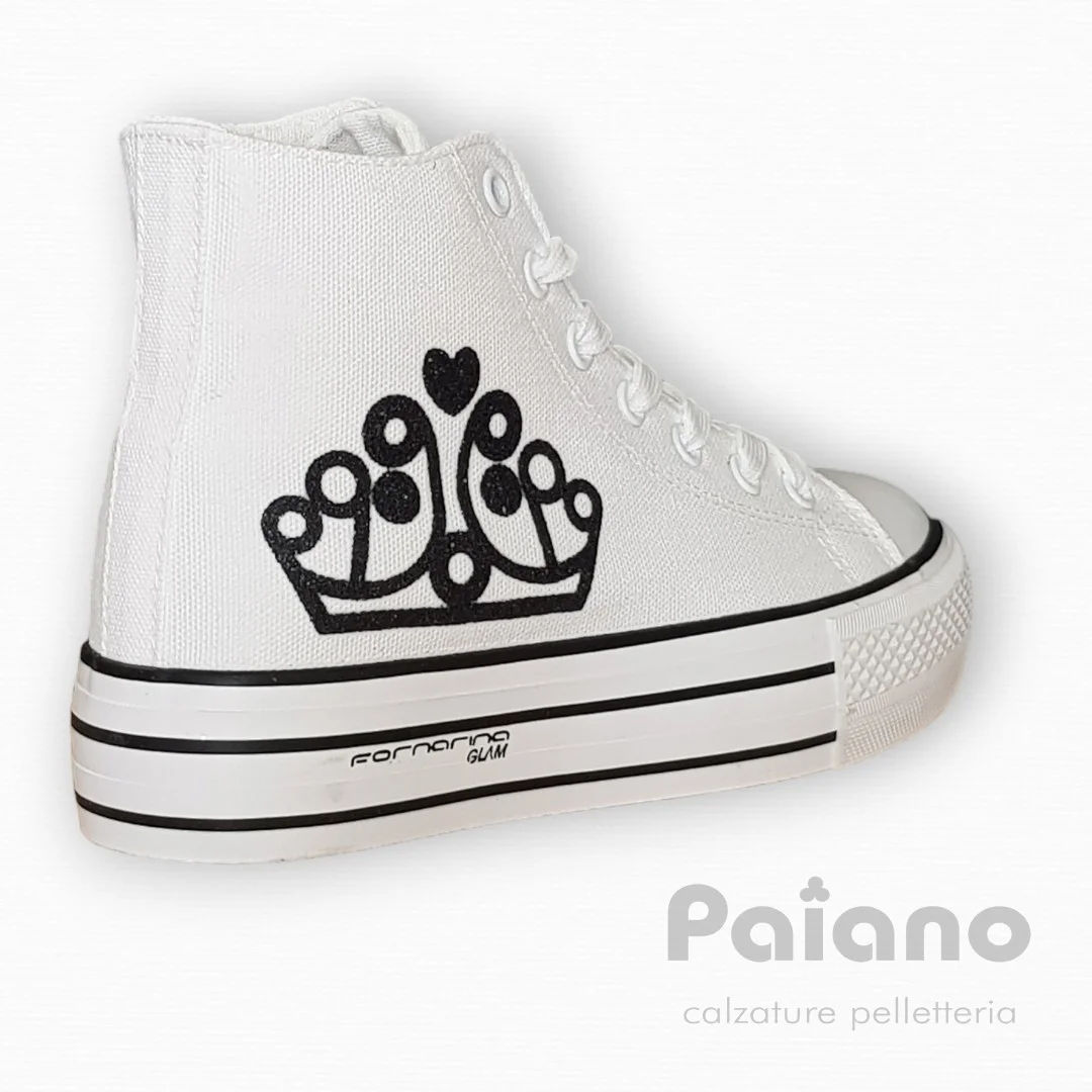 Fornarina barbi 4 tessuto bianco logo nero mod. converse