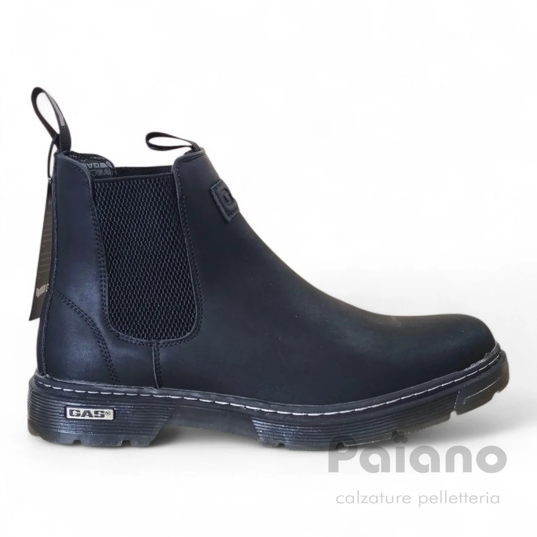 Gas 521521 nero pelle stivaletti beatles con elastici da uomo