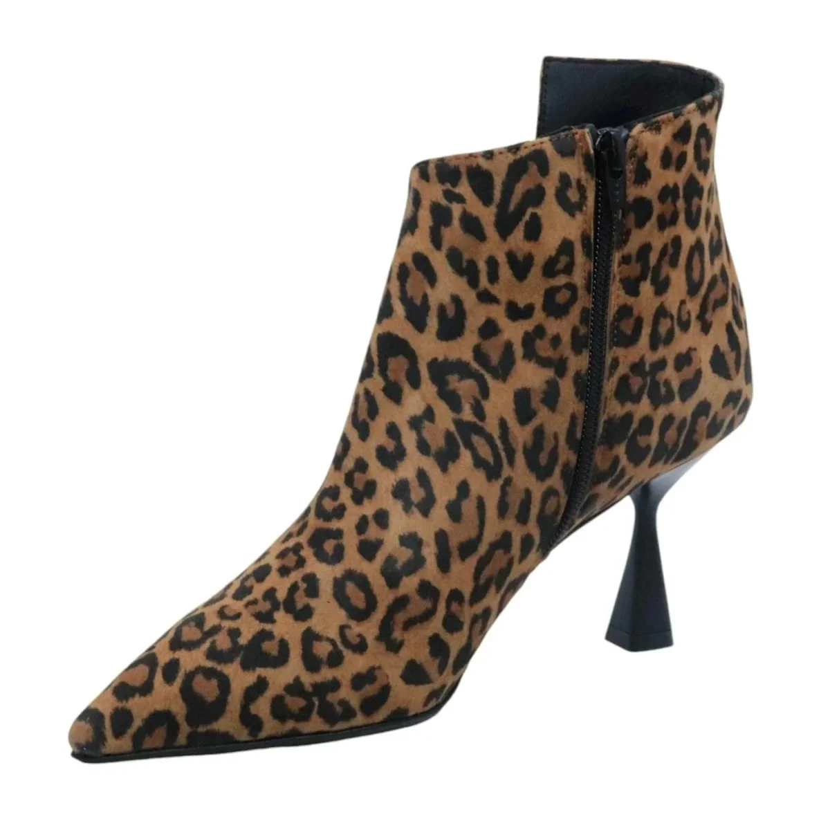 Isabelle Paris Juanito IS424 tronchetto da donna in leopardato. Tomaia in morbido camoscio e fodera interna in pelle con chiusura a zip laterale. Il tacco è alto 8 cm e la suola è in vero cuoio con mezza pianta in gomma. Prodotto made in Italy. Modello IS424 Juanito 137