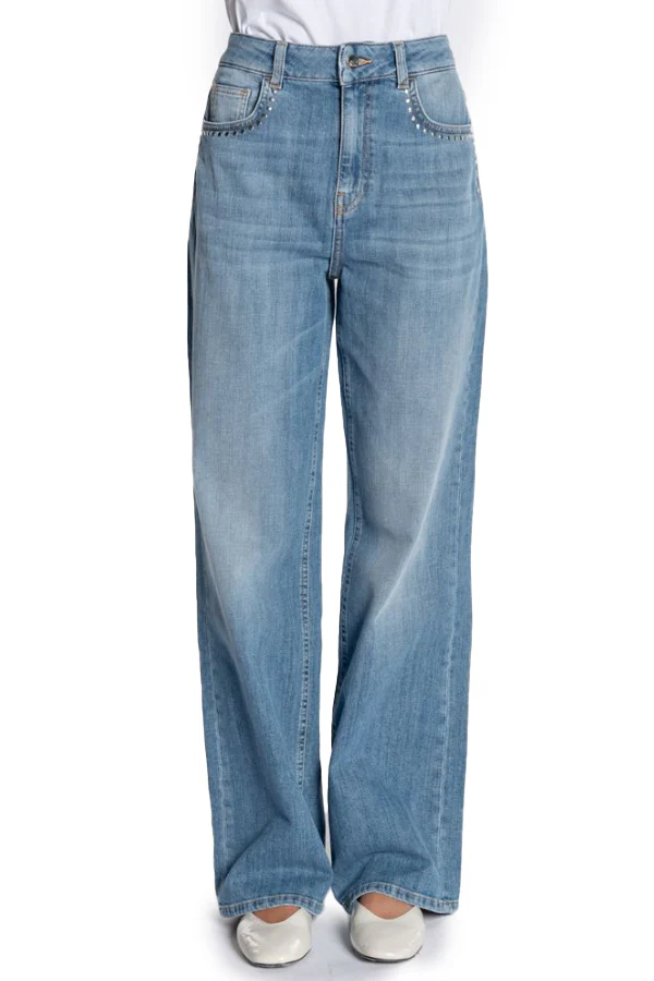 Jeans Kaos a palazzo lavaggio medio con borchie