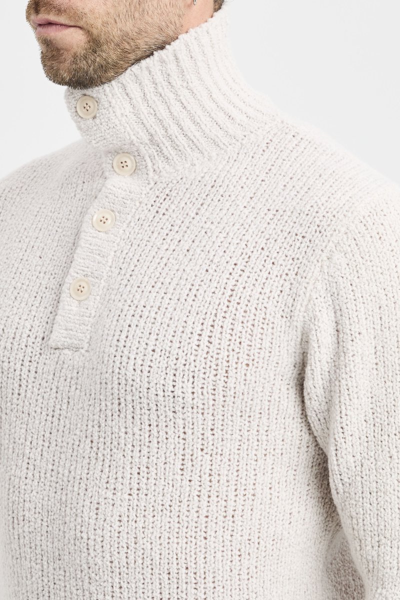 Il lupetto con bottoni sul collo consente di modularne l’apertura, chiuso per protezione dal freddo oppure semiaperto per un look più rilassato e trendy.