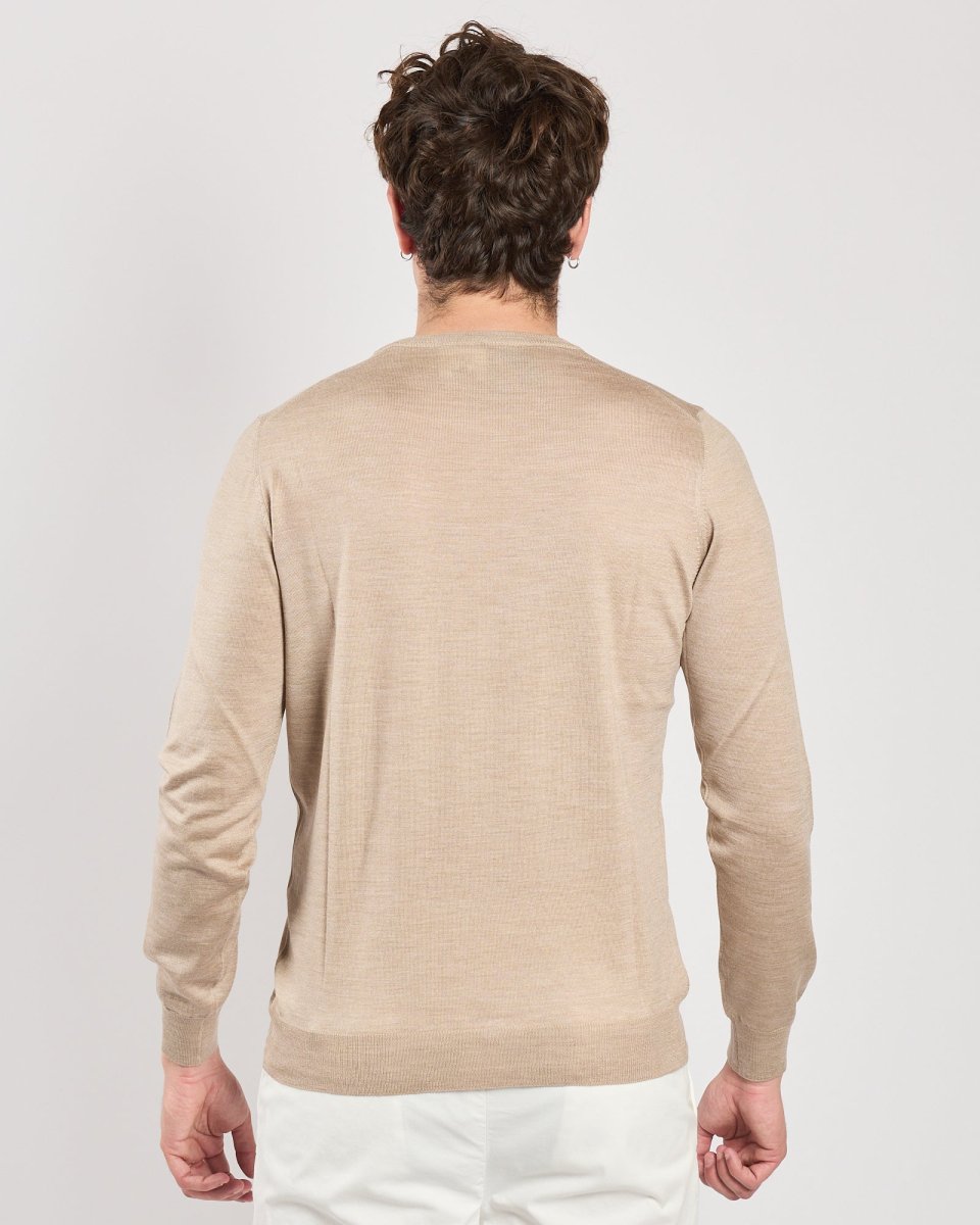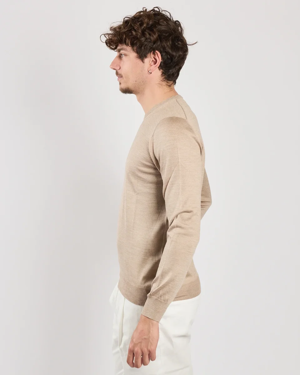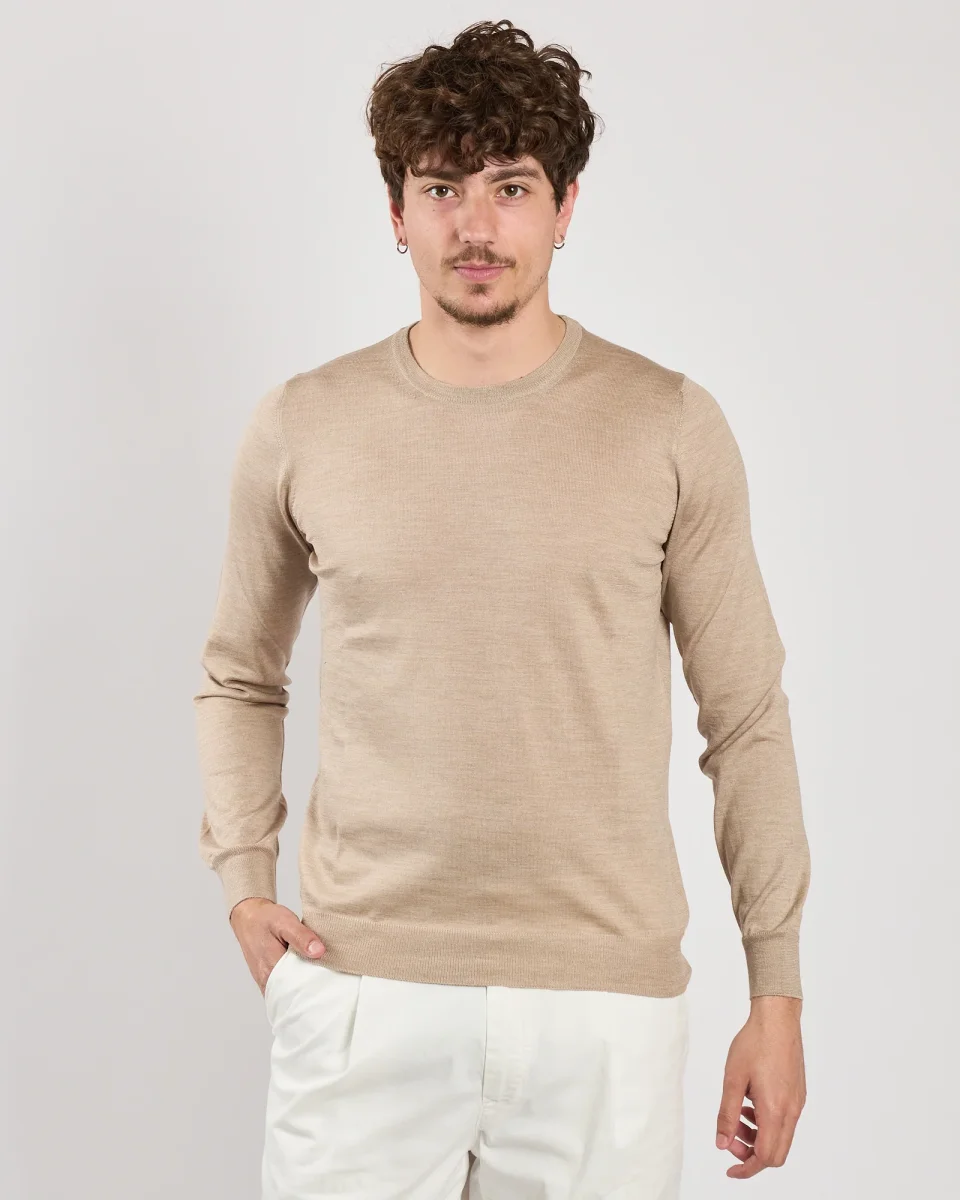 Maglia giracollo beige Manica lunga Vestibilità regolare Composiozione: 70%Lana 30%Seta Il modello è alto 1.75 indossa tg 50 Cod Art: 57167/13190-109