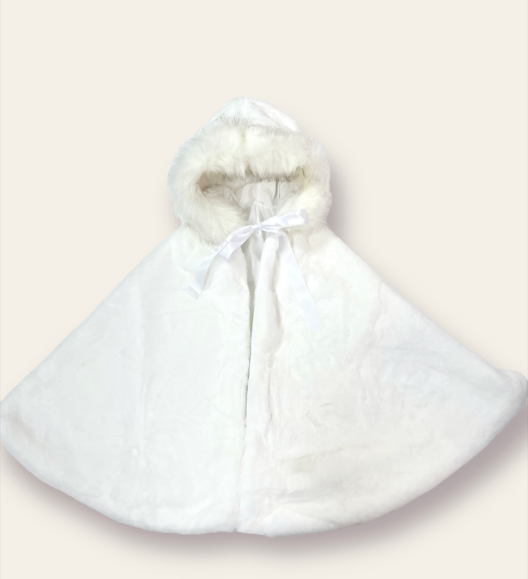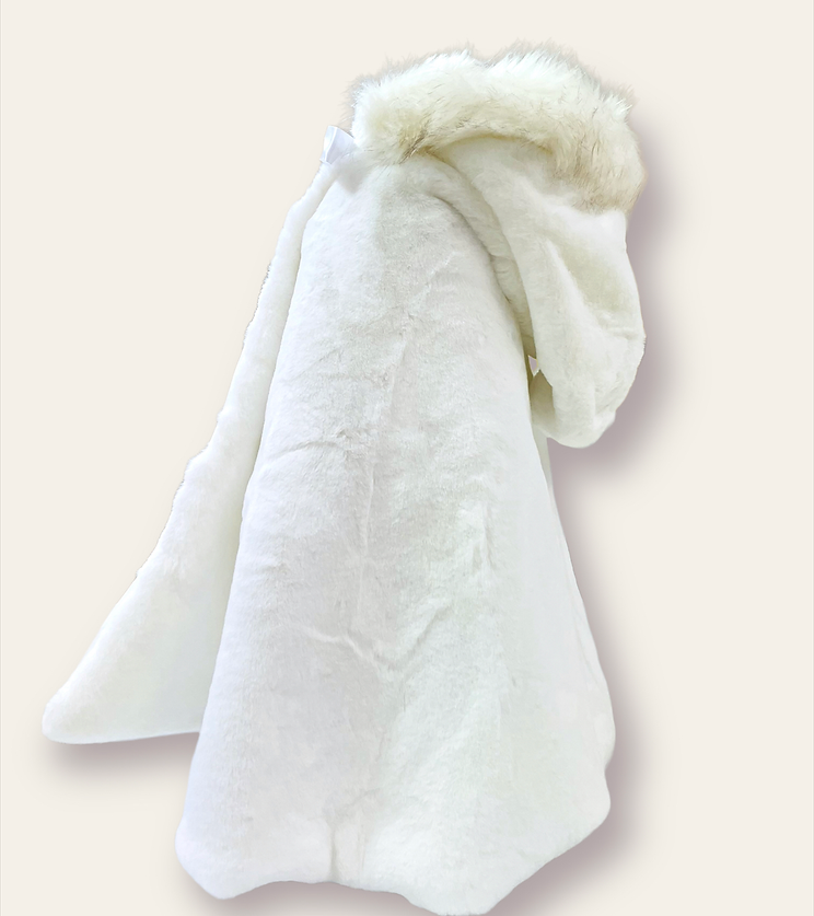 Mantella in pelliccia con pelo bianco sul cappuccio