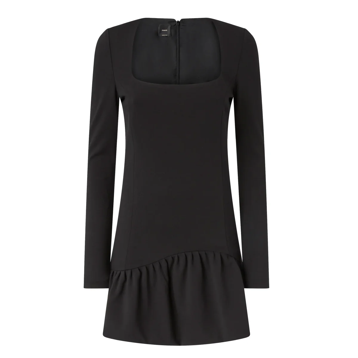 Una linea essenziale e un taglio deciso definiscono questo mini abito con scollo quadrato di Pinko.