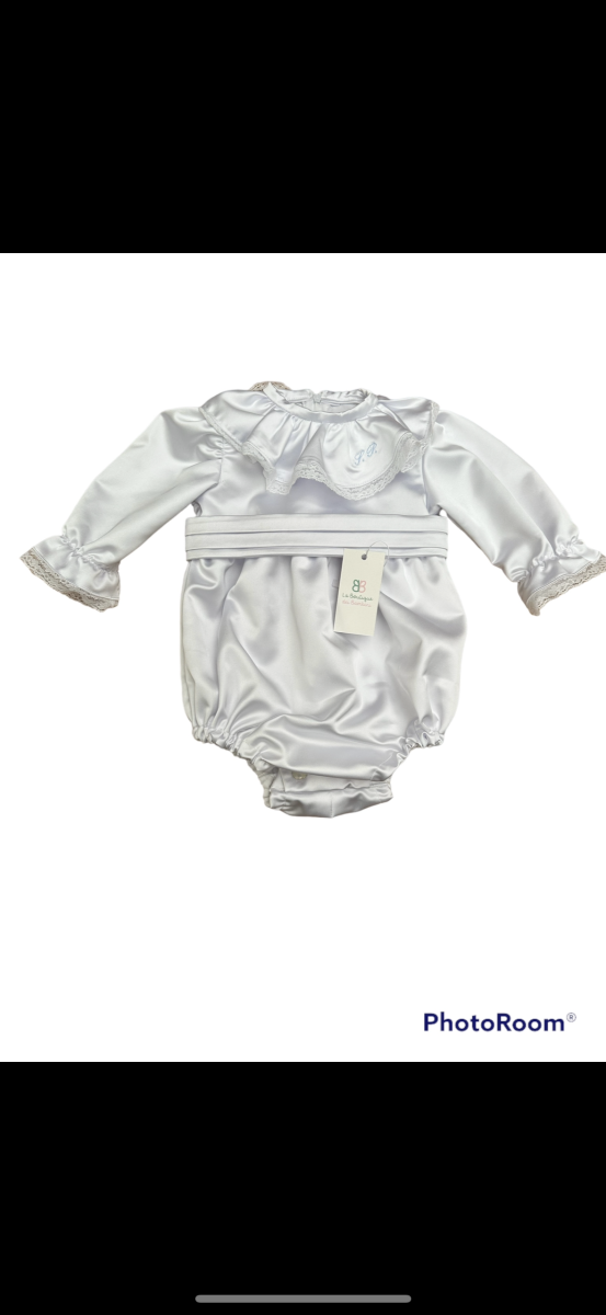 Pagliaccetto in seta con apertura sotto per facilitare il cambio e chiusura lampo invisibile dietro per l’apertura