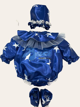 “Cioccolattoso”, è cosi che definiamo questo abitino a pagliaccio, con al centro una stampa “Baci Perugina”. Ma non è carnevale senza una bellissima cuffia e copriscarpe con applicazioni.