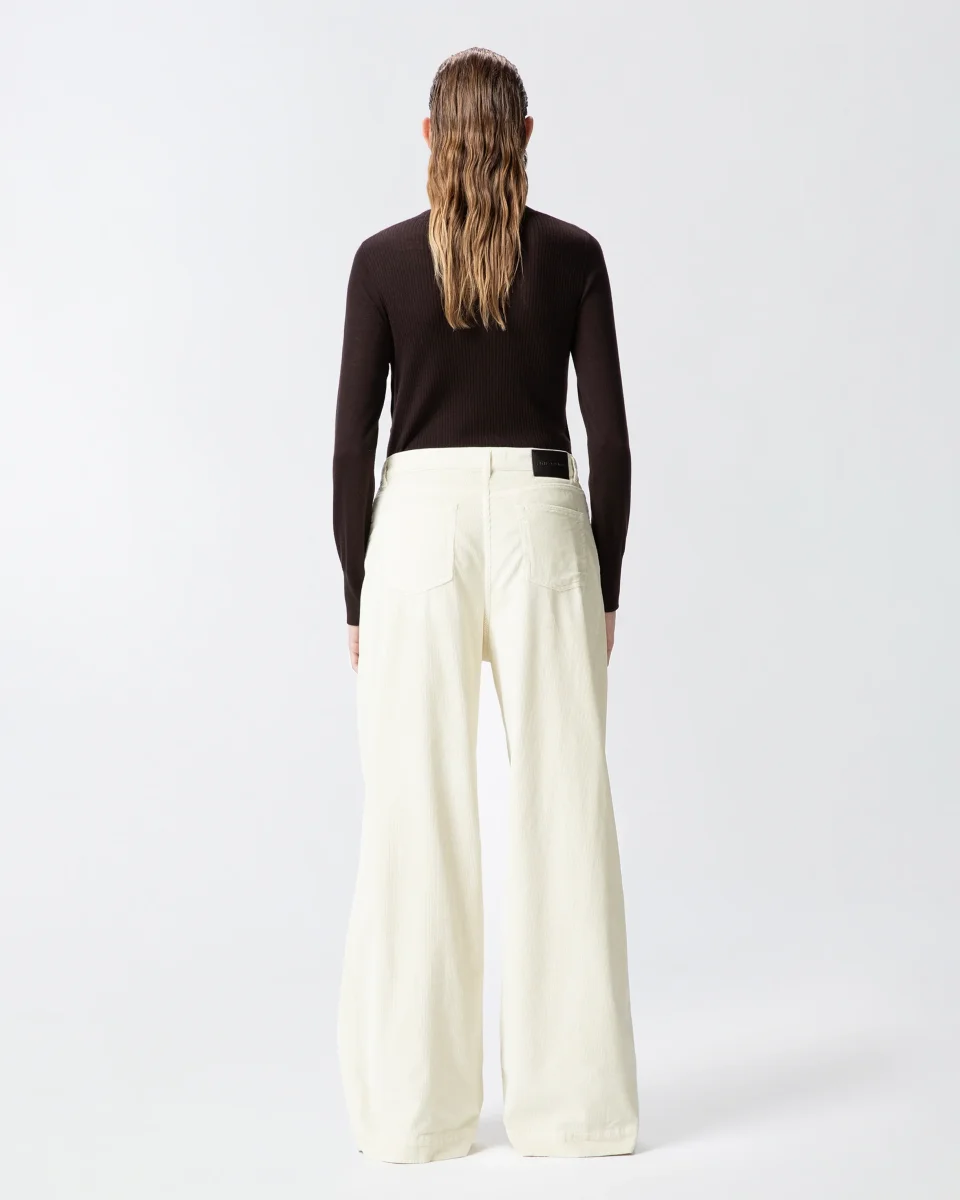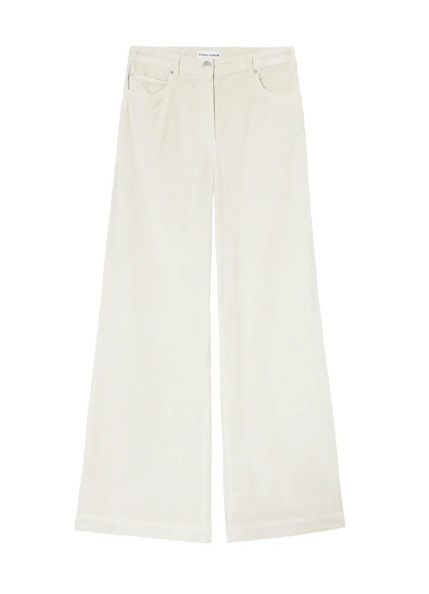 Pantalone lungo cinque tasche a palazzo Pinko con gamba ampia realizzato in velluto a coste sottili.