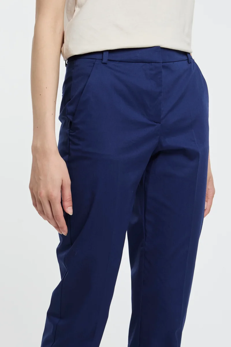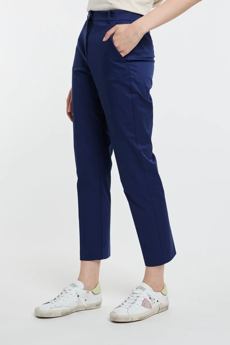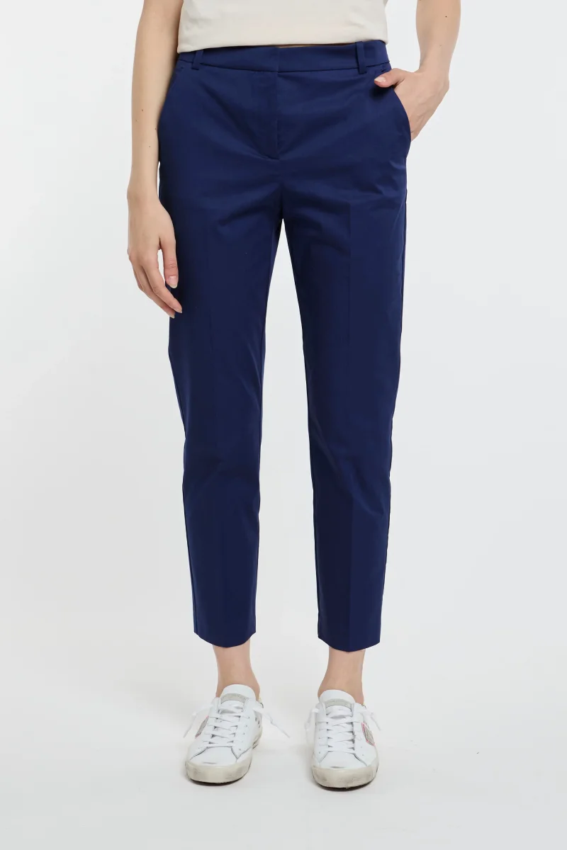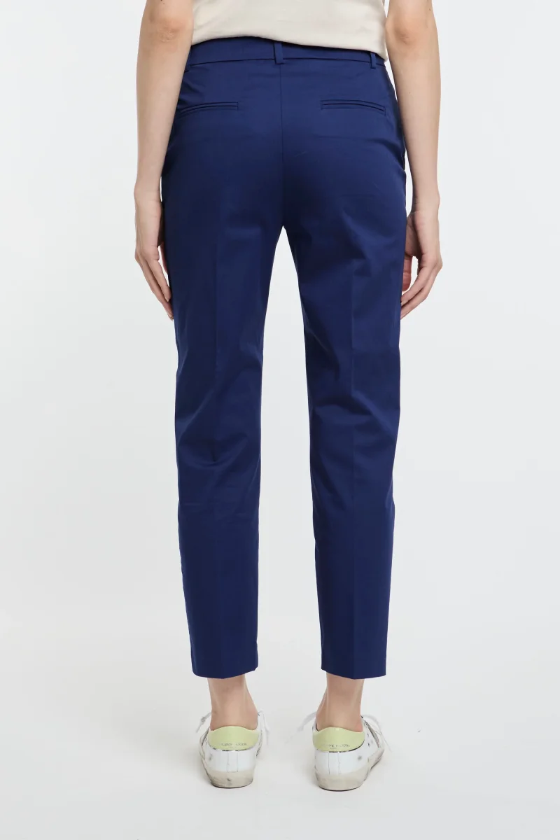 Pantaloni cigarette-fit Pinko in tessuto tecnico di viscosa stretch lavorato punto stoffa dal particolare effetto scuba. Dettaglio di piega stirata al centro gamba sia davanti che sul retro, tasche alla francese davanti e a filetto sul retro. Vita con passanti per cintura, chiusura con zip e piccolo gancio.# Composizione tessuto: 97% cotone, 3% elastene. # […]