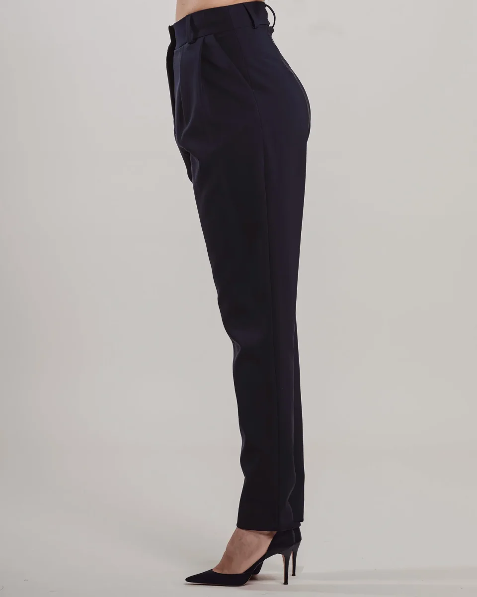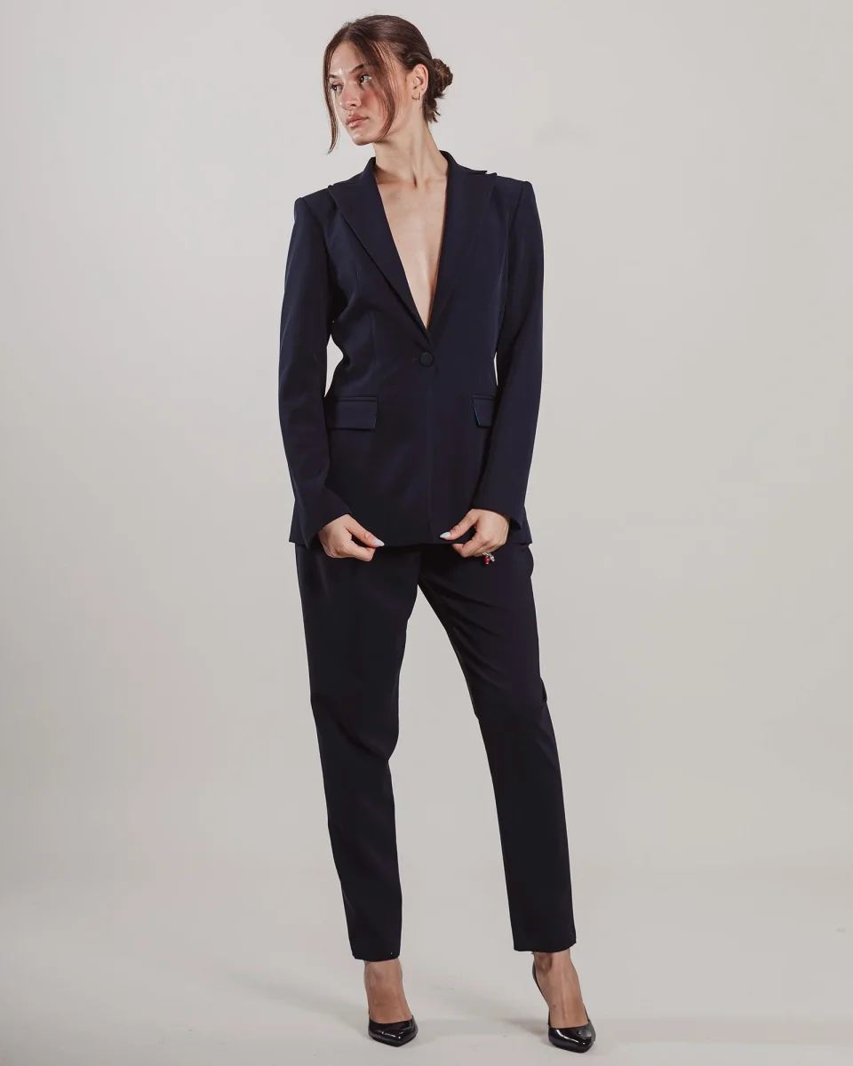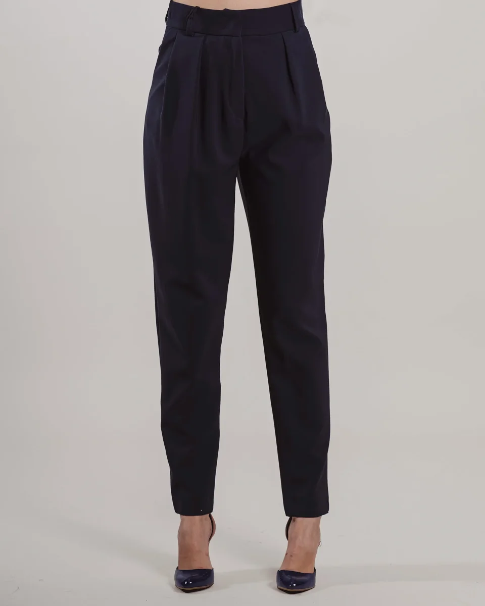 Pantalone doppia pence blu Chiusura con zip e automatico Passanti in vita Vestibilità regolare Il pantalone è abbinabile alla Giacca GC019 89 BLU La modella è altab 1.70 indossa TG 40
