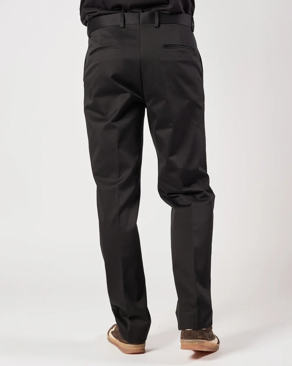 Pantalone largo nero Tasche america Tasche dietro a filo Chiusura con zip e clip Fondo 20 Vestibilità regolare Composizione: 50%Cotone 50%Modal Il modello è alto 1.80 indossa tg 34