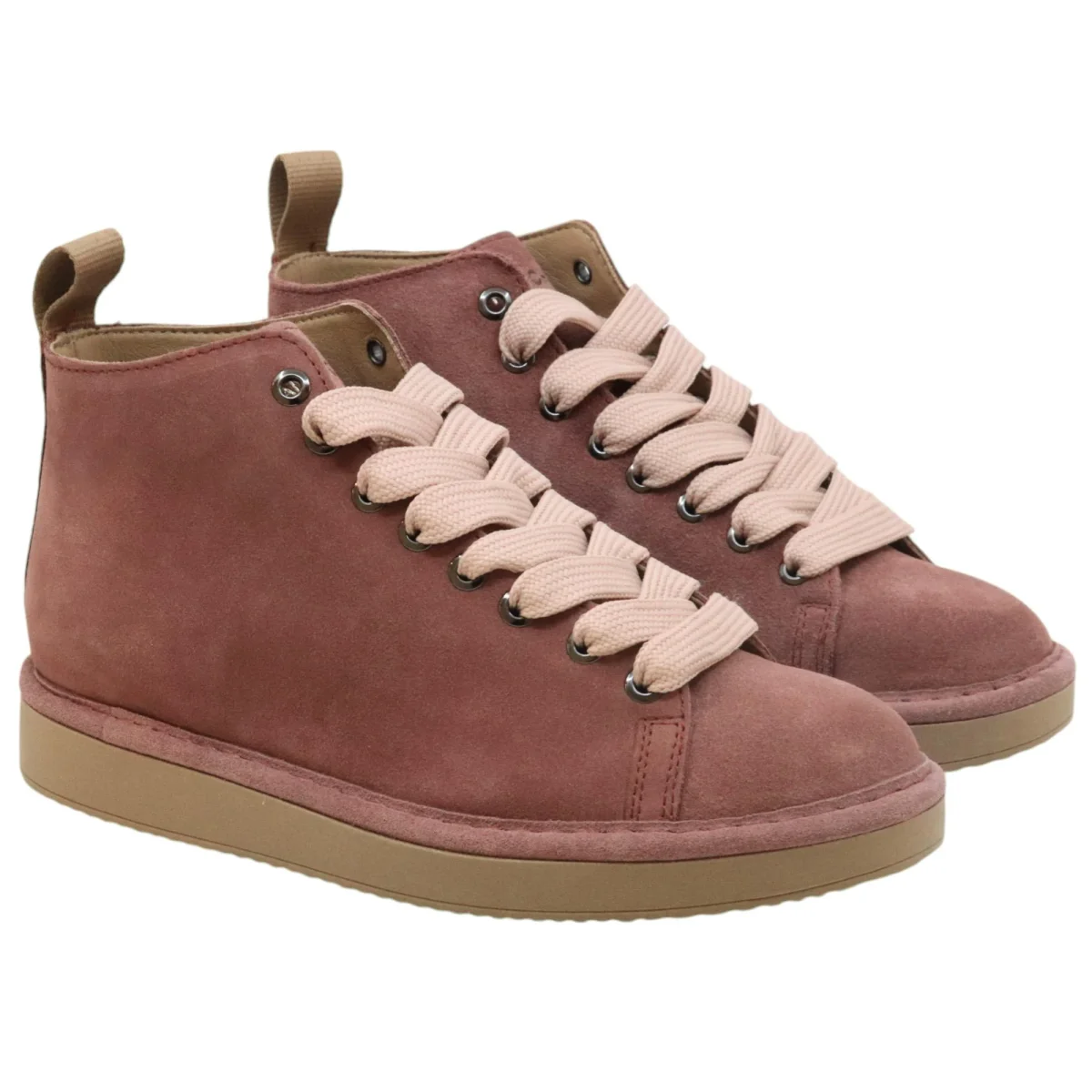 Polacchino snekar donna Panchic P01 in camoscio brownrose con lacci rosa