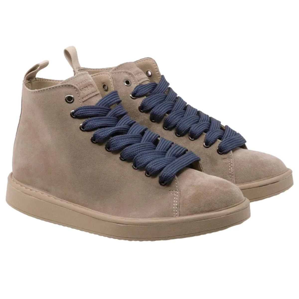 Polacchino uomo Panchic P01 in realizzata in pelle scamosciata nocciola con lacci blu