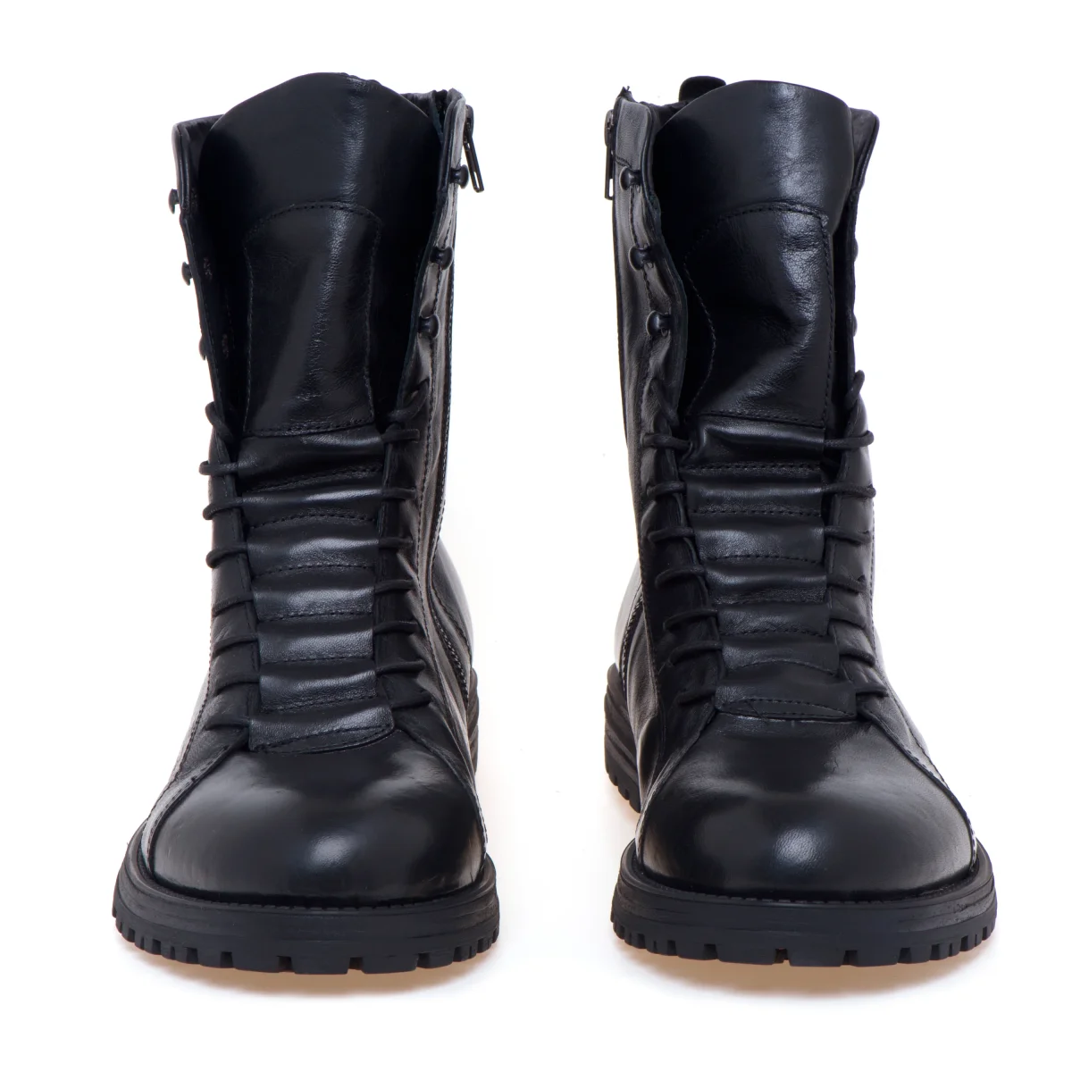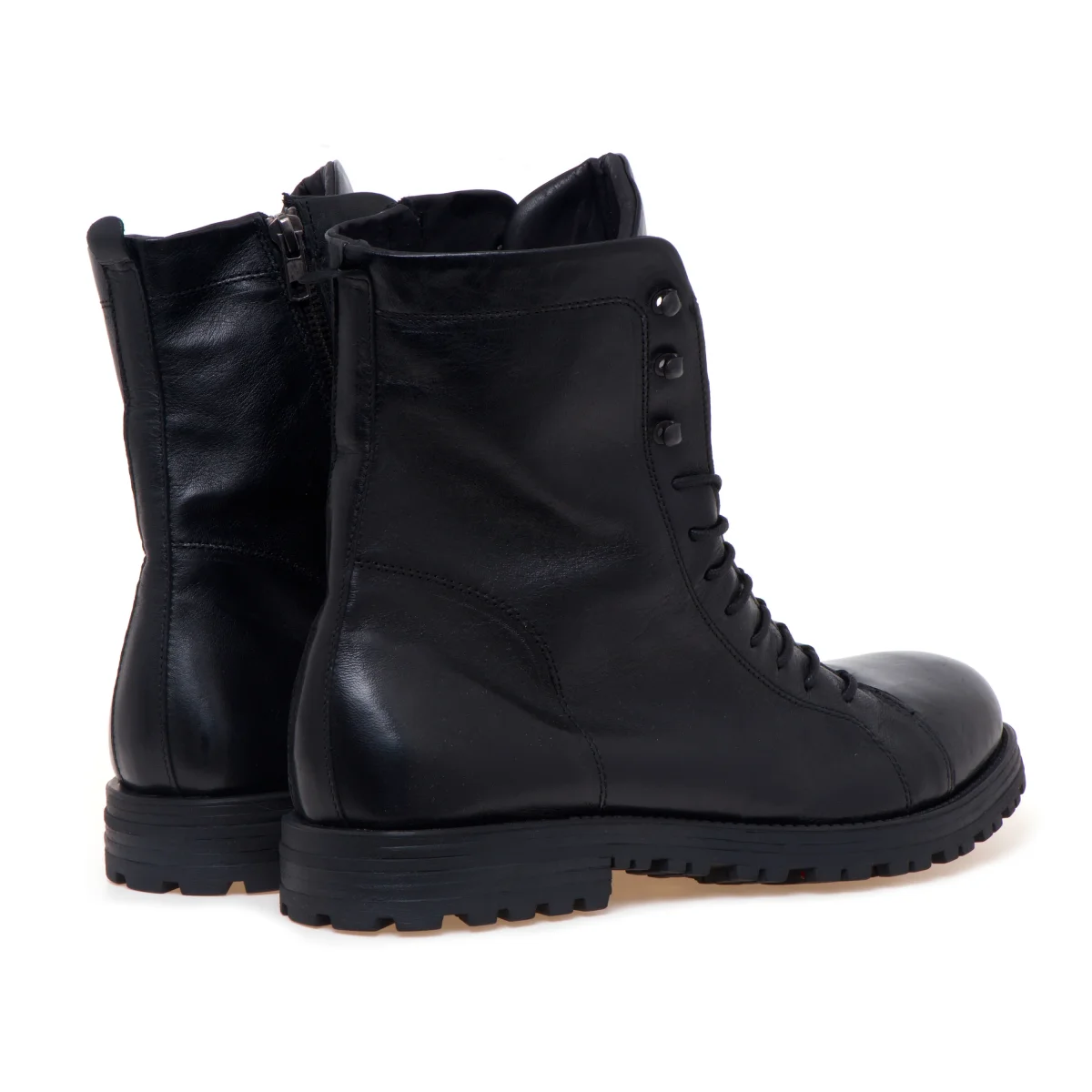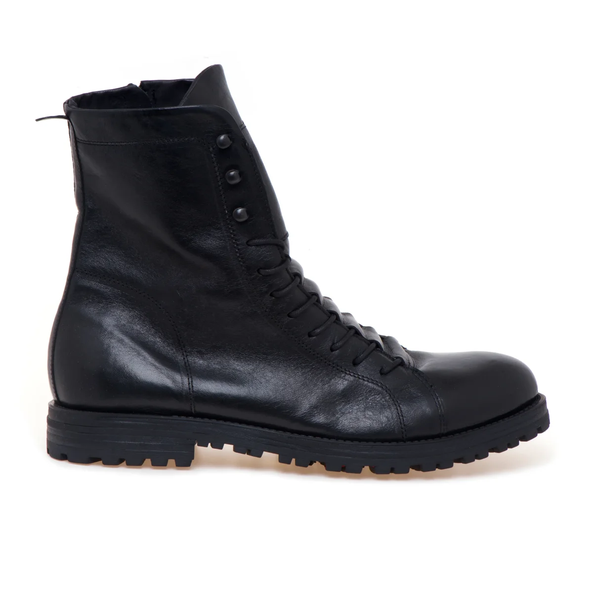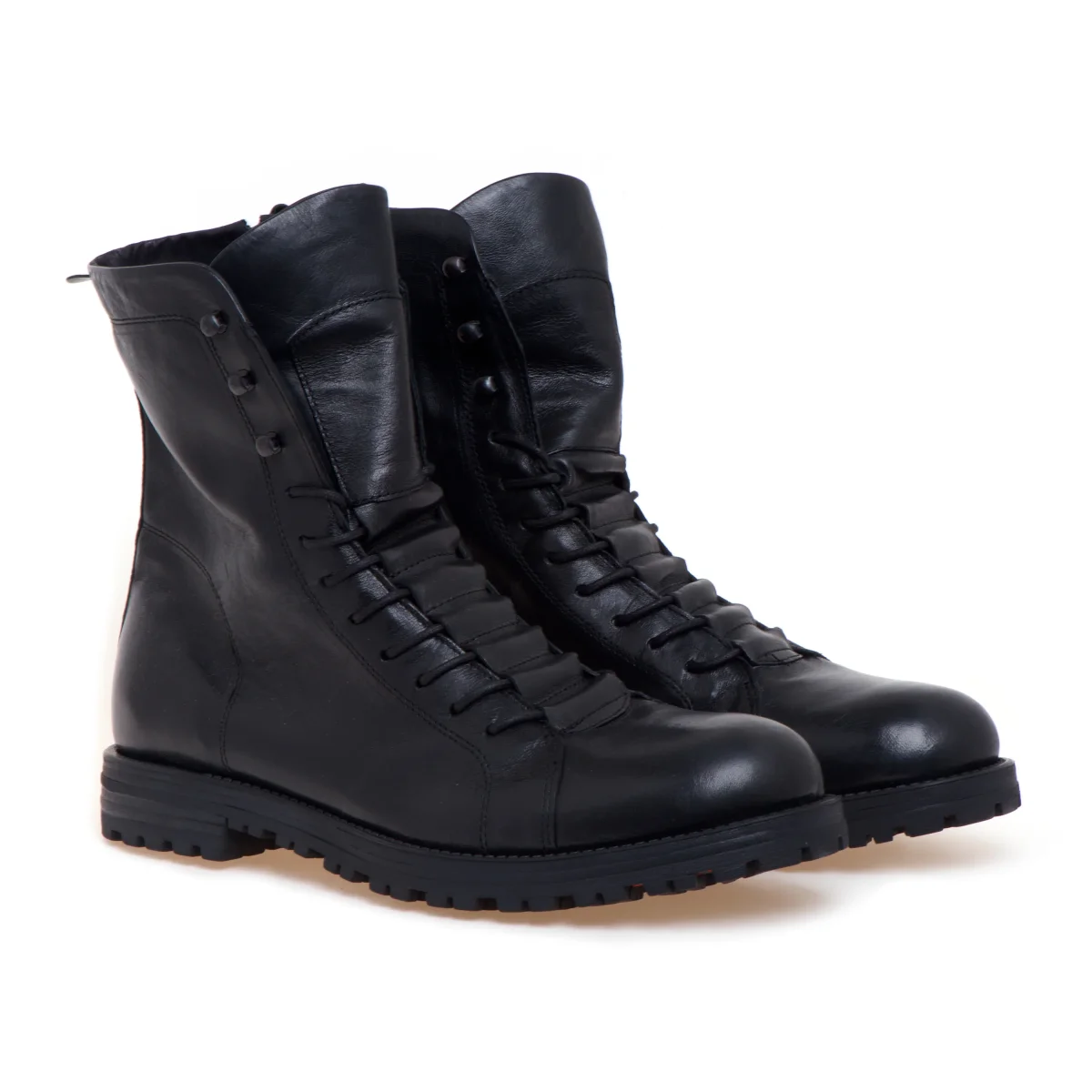Anfibio Pawelk’s realizzato in morbido vitello nero e caratterizzato dai lacci semi-coperti appositamente pensati per ottenere un look minimal e ricercato.