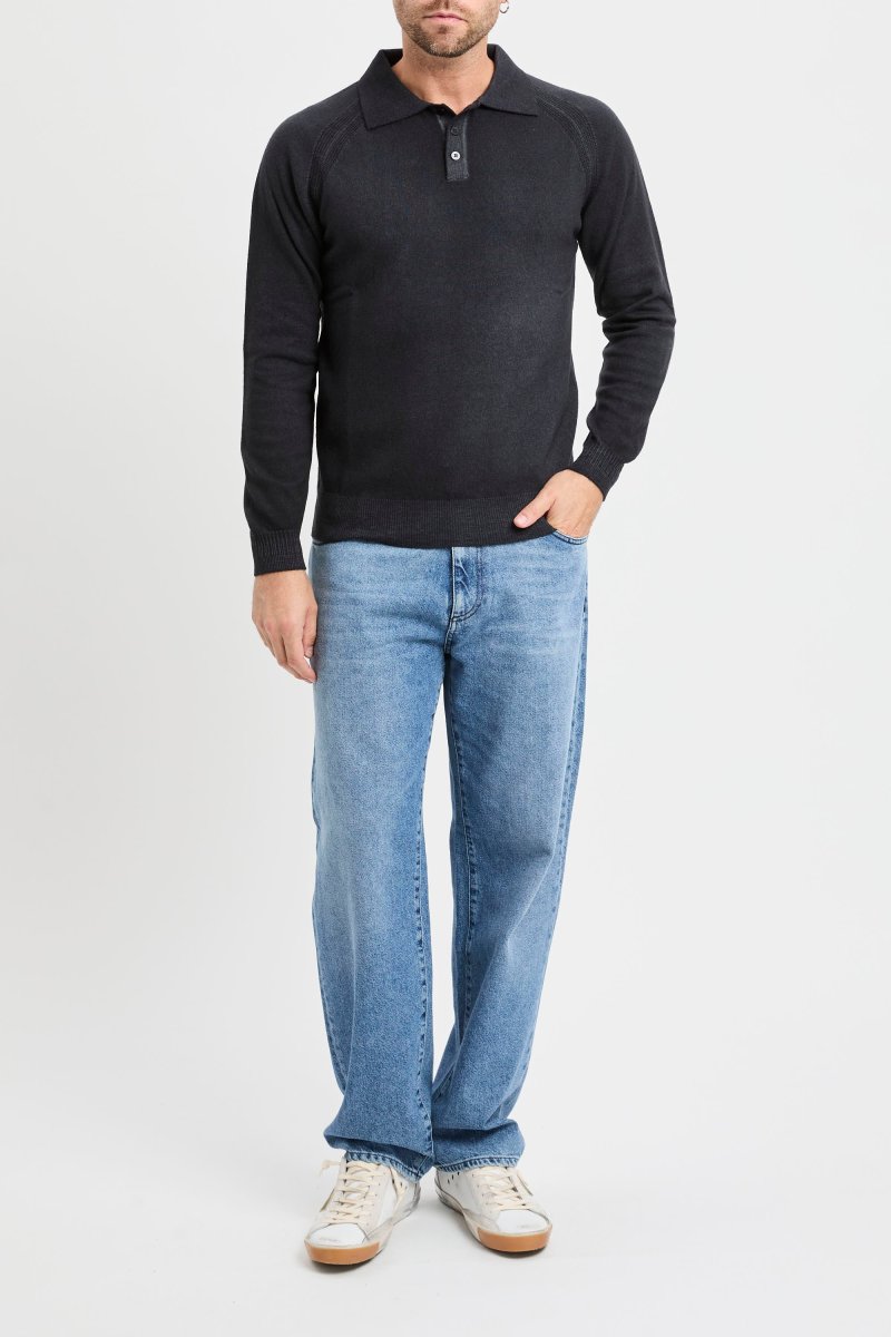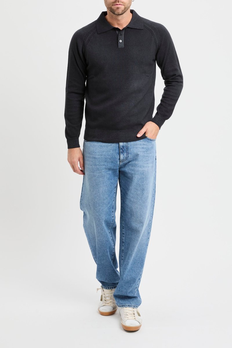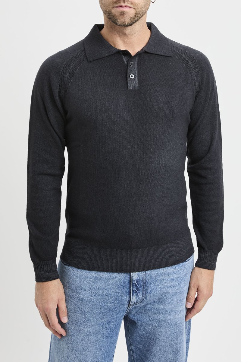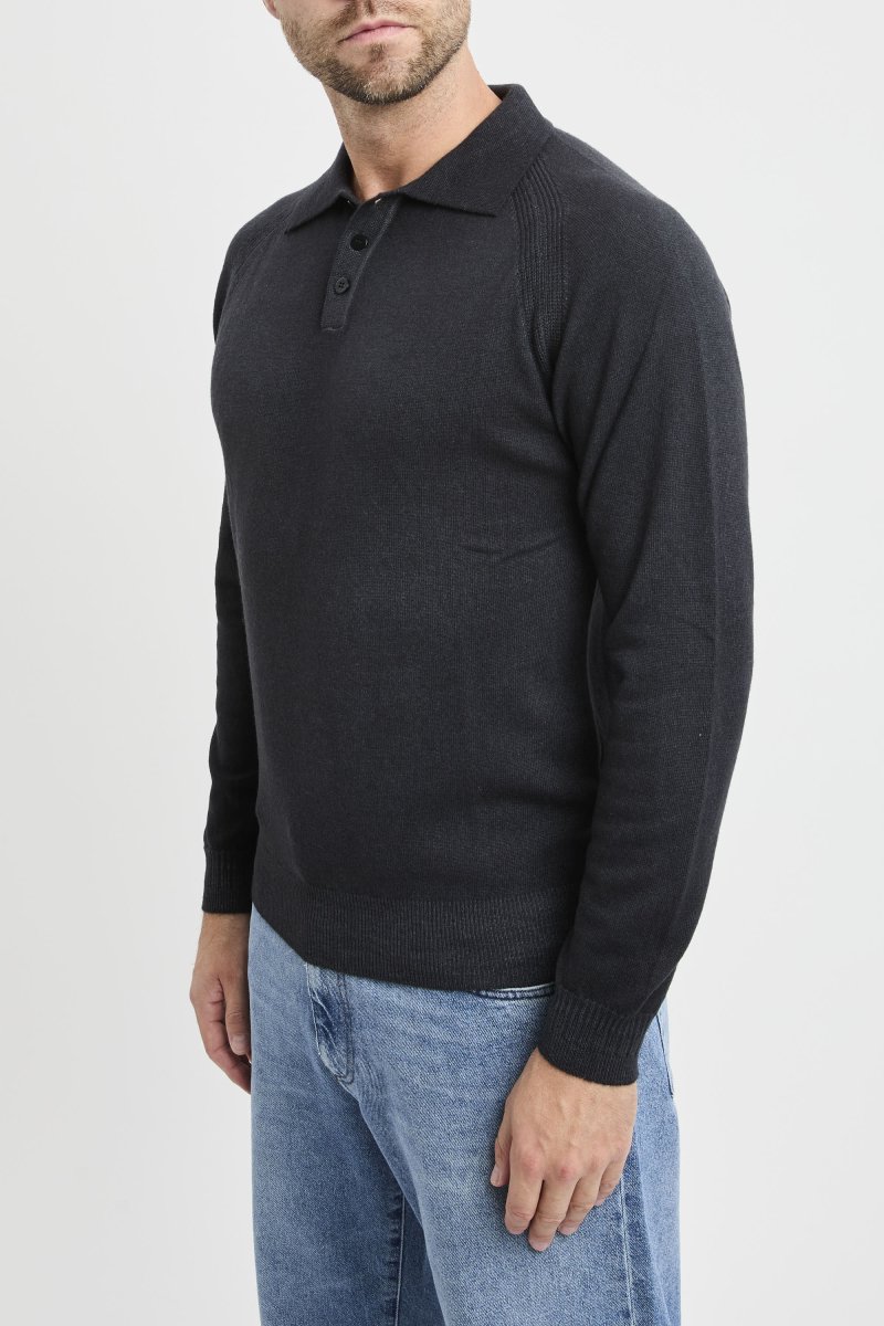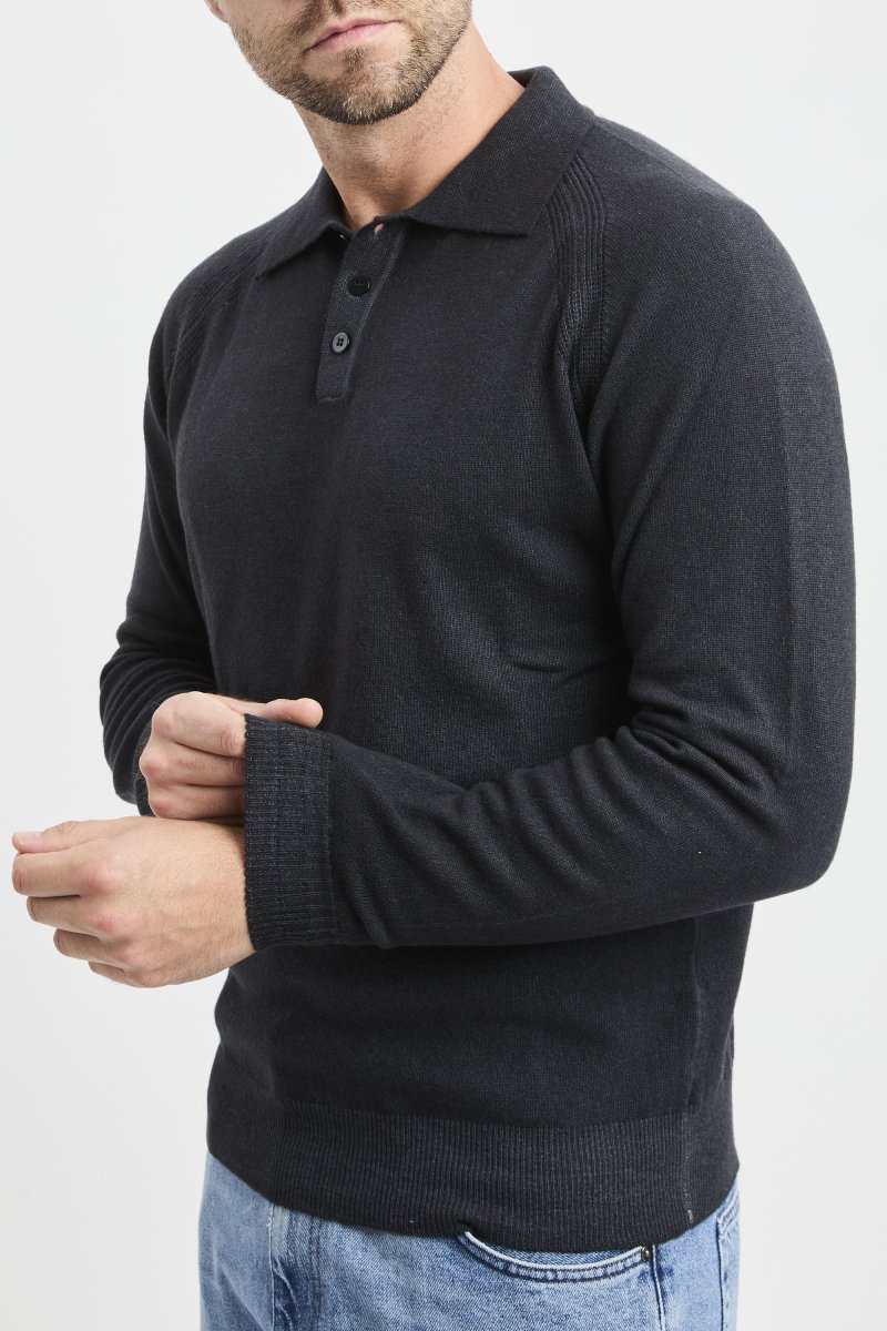 Polo Daniele Fiesoli a manica lunga con spalla a sella in misto cashmere: una maglia polo morbida e calda pensata per i mesi freddi, con mano piena e comfort naturale grazie alla lana merino extrafine arricchita dal 10% di cashmere.