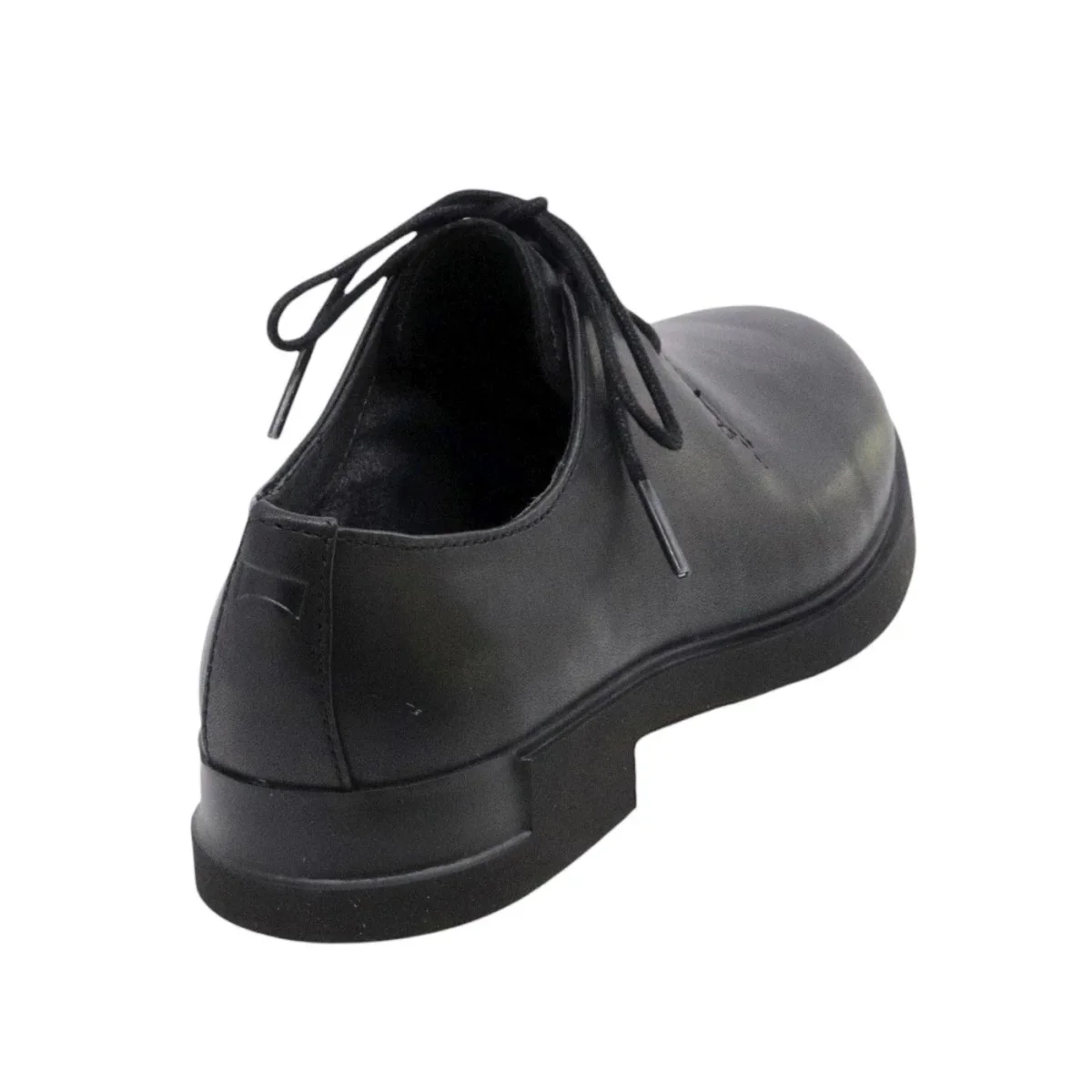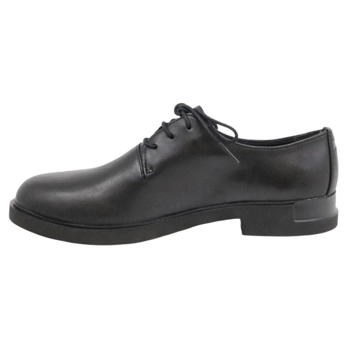 Scarpa allacciata Camper da donna in pelle di colore nero. Suola in gomma Extralight super leggera che permetta il massimo comfort e flessibilità. Modello K200685-001 Iman Supersoft Black