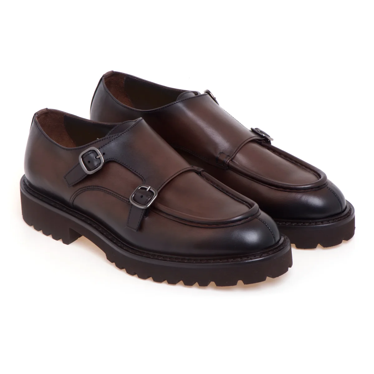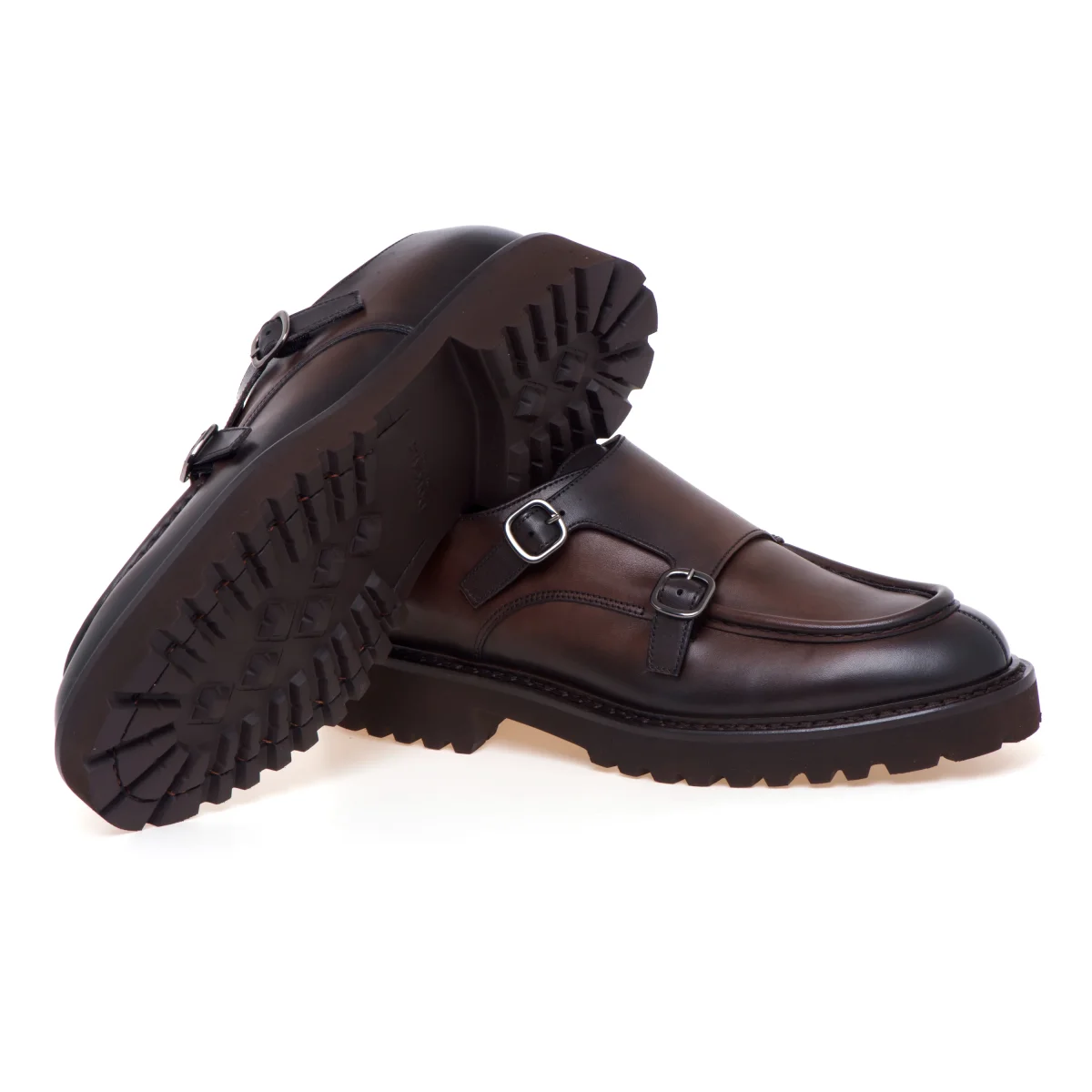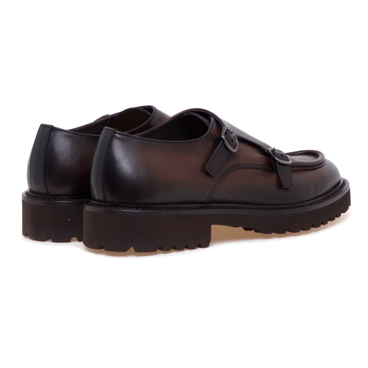 Scarpa doppia fibbia norvegese Doucal’s in pelle anticata con suola in gomma