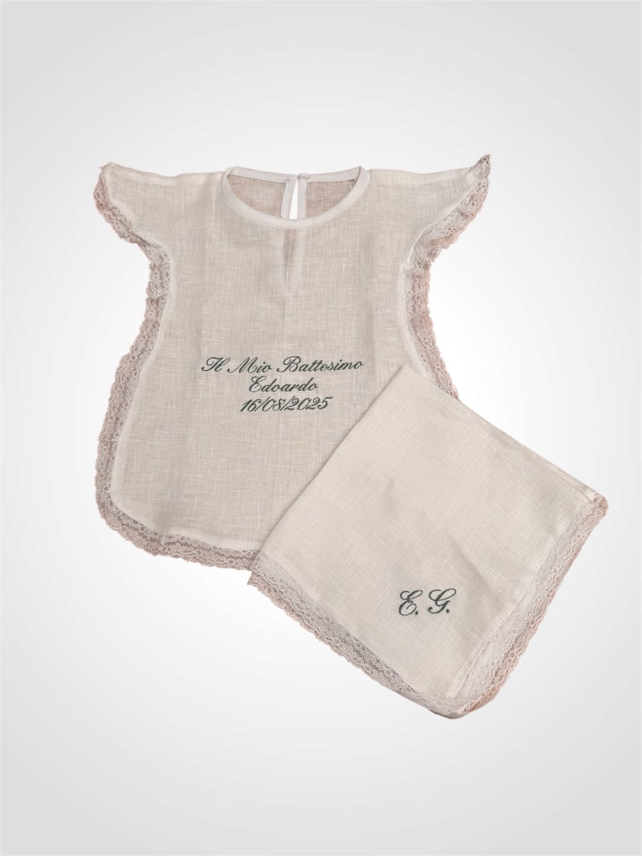 Set battesimale in lino con incisione verde