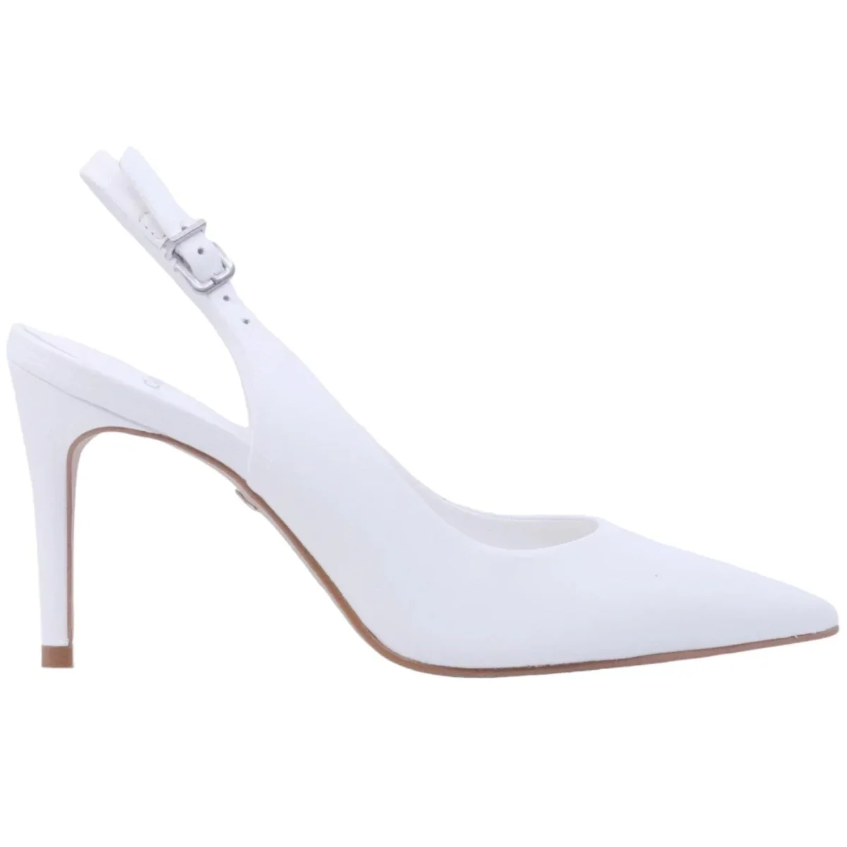 Slingback donna Carrano 195096 in pelle di colore bianca con Il tacco alto 9 cm. La scarpa ha un pratico cintino regolabile al tallone. Ottima scarpa per le tue occasioni quotidiane o per cerimonie. Il plantare è imbottito e la suola è in morbida gomma. Modello195096 Mestico white
