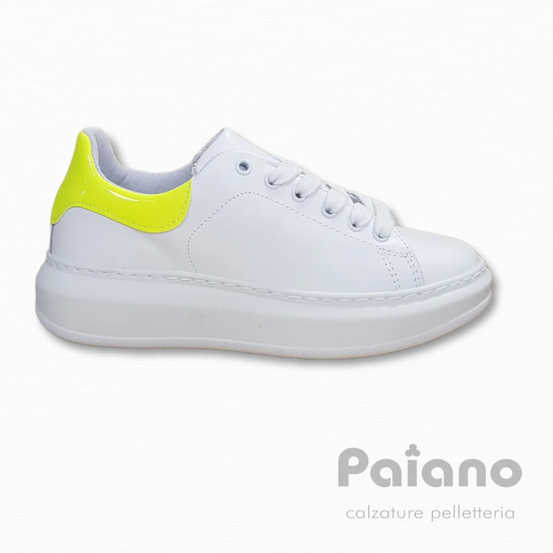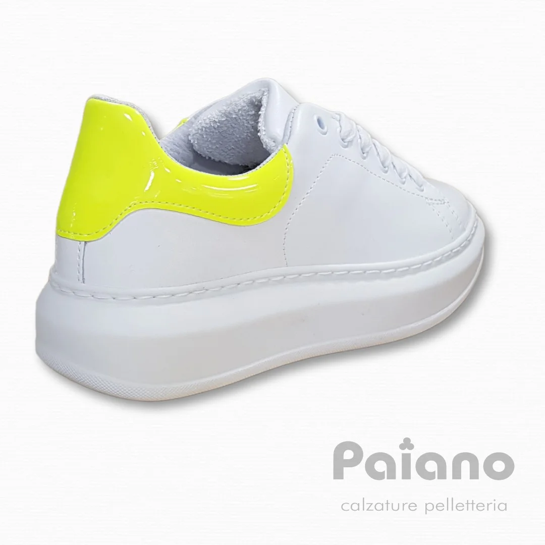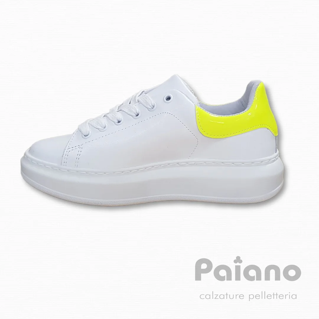 Sneakers gaeta bianco pelle riporto giallo fluo platform