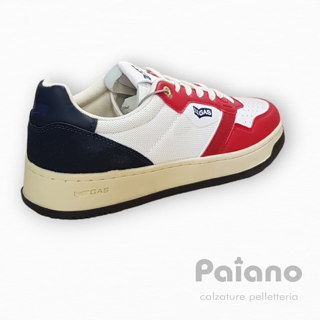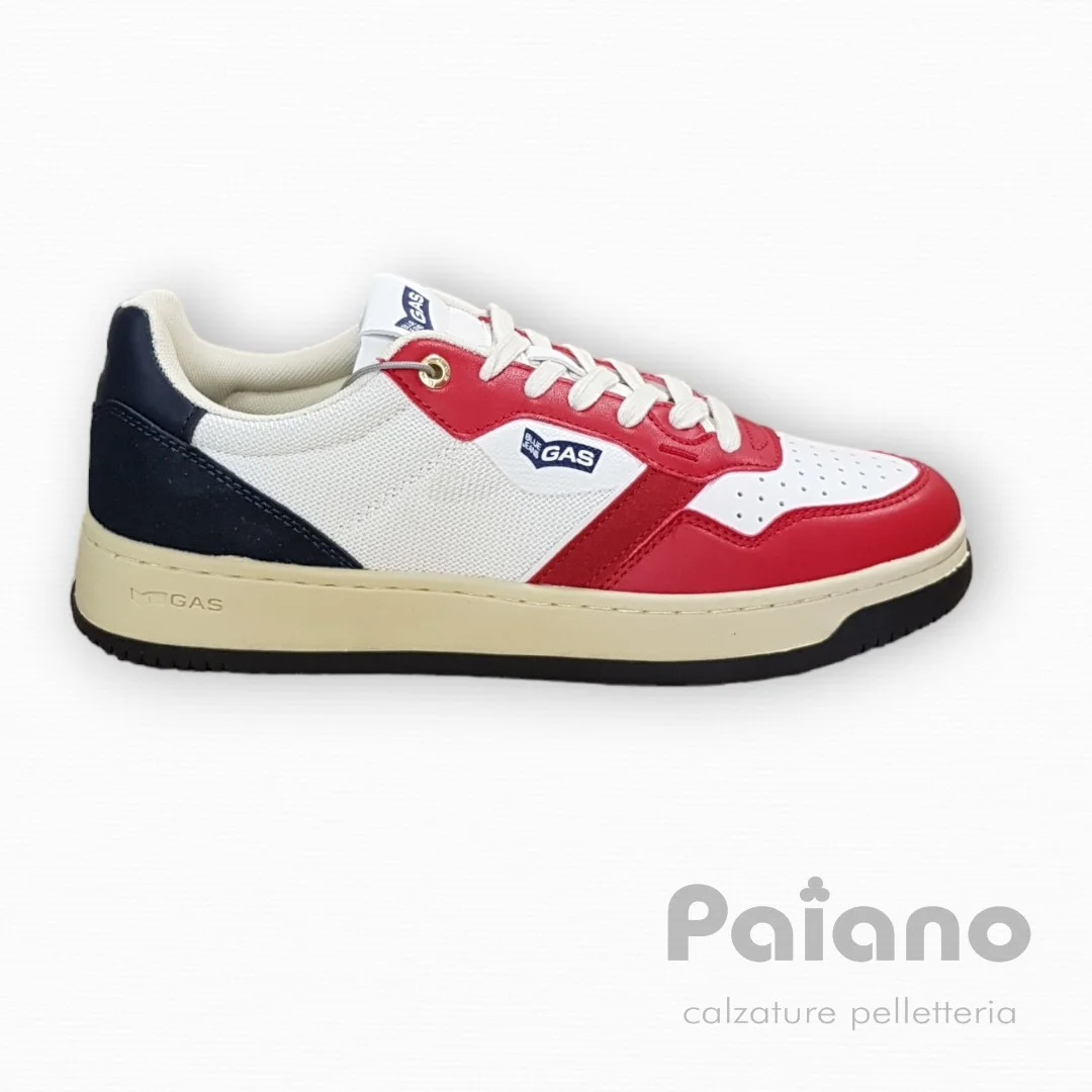 Sneakers Gas 314301 ken mix pelle rosso bianco blu vintage da uomo