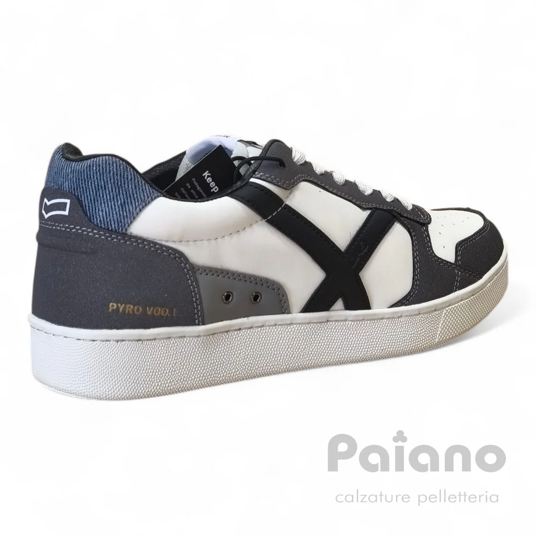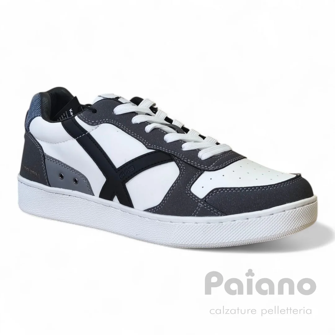 Sneakers Gas 528200 pelle bianco riporti camoscio grigio