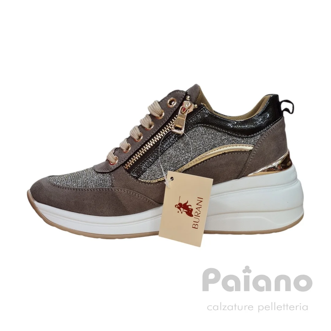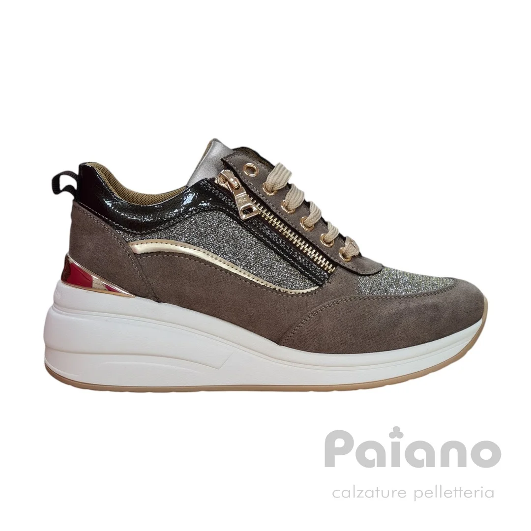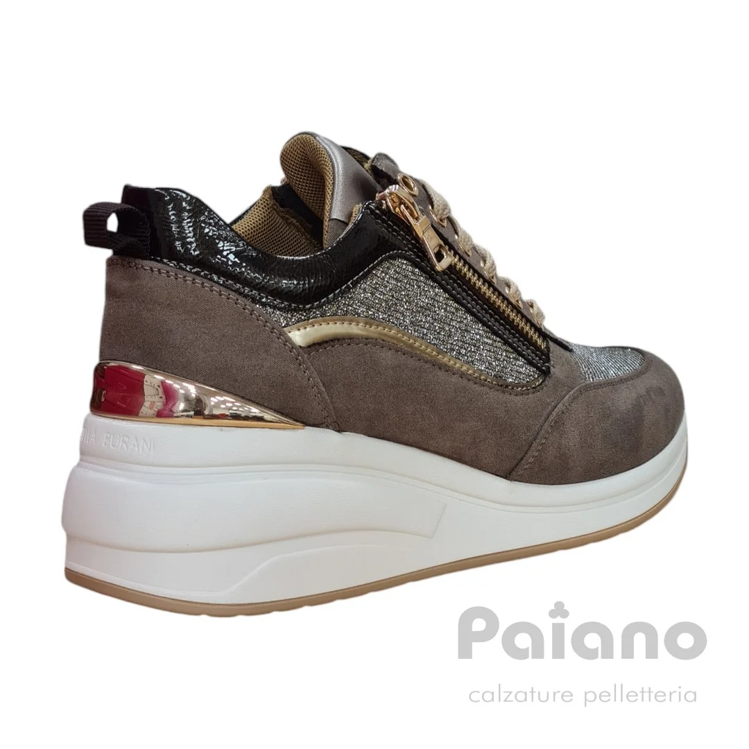 Sneakers Mariella Burani 50942 camoscio tortora laminato platino con zip