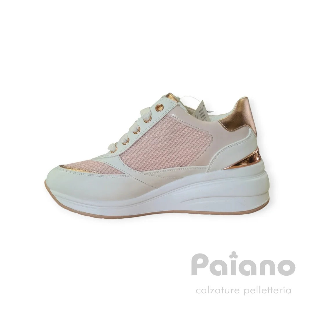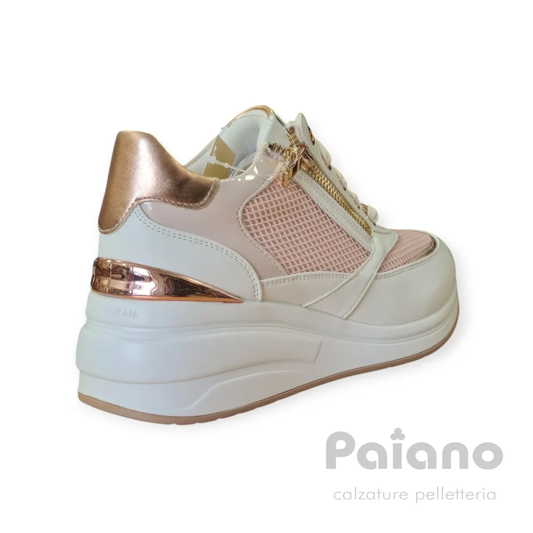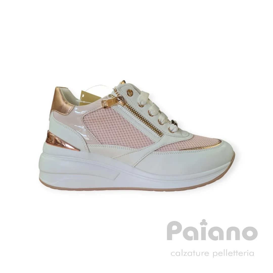 Sneakers Mariella Burani 51051 pelle bianco tessuto pink zeppa con zip