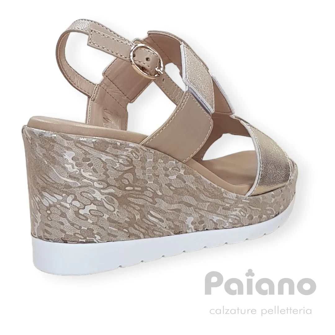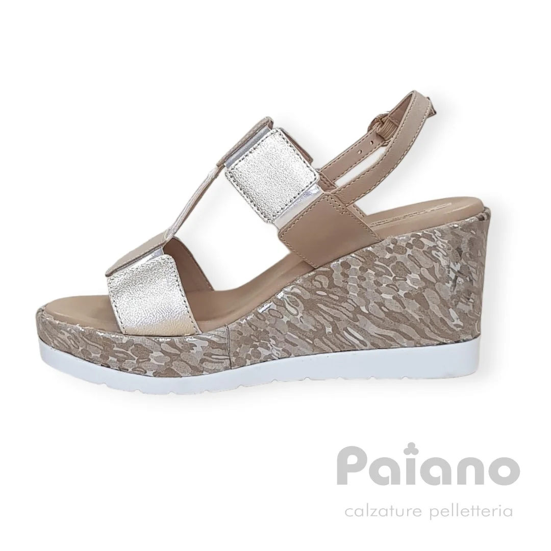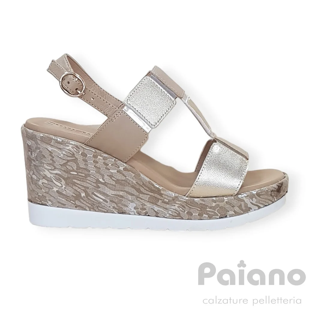 Space Moda 55402 pelle platino e beige sandalo zeppa alta