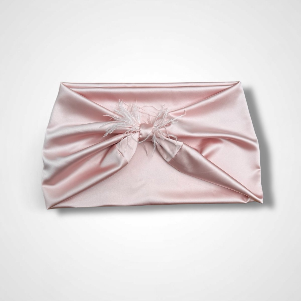 Stola chiusa con nodo e piume rosa chiaro