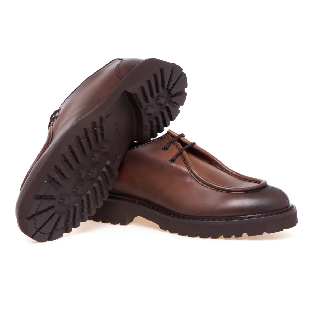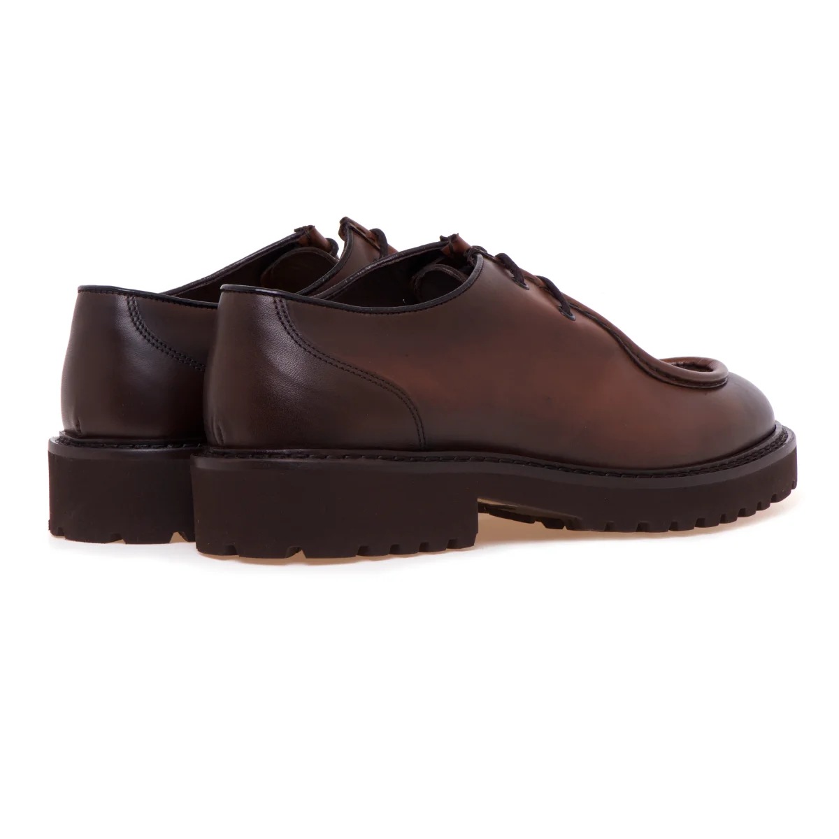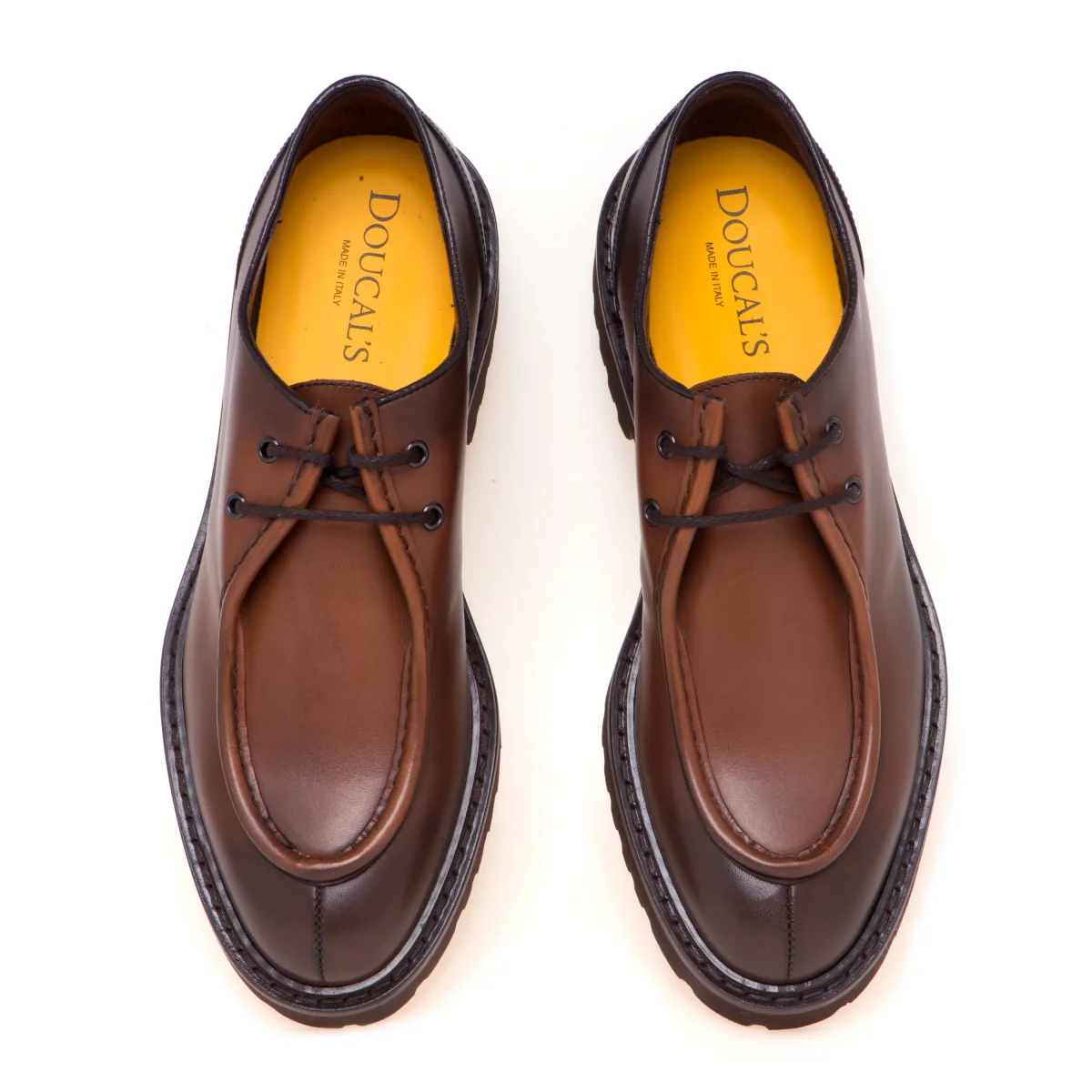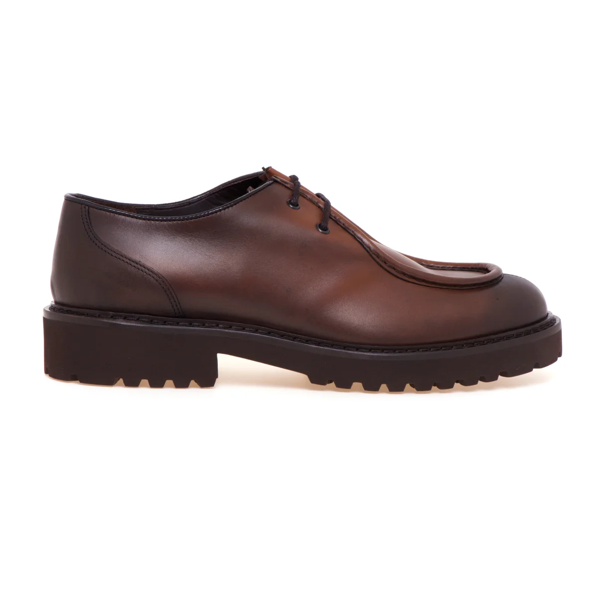 Stringata Doucal’s in pelle anticata con cucitura norvegese, suola in gomma e guardolo a vista.