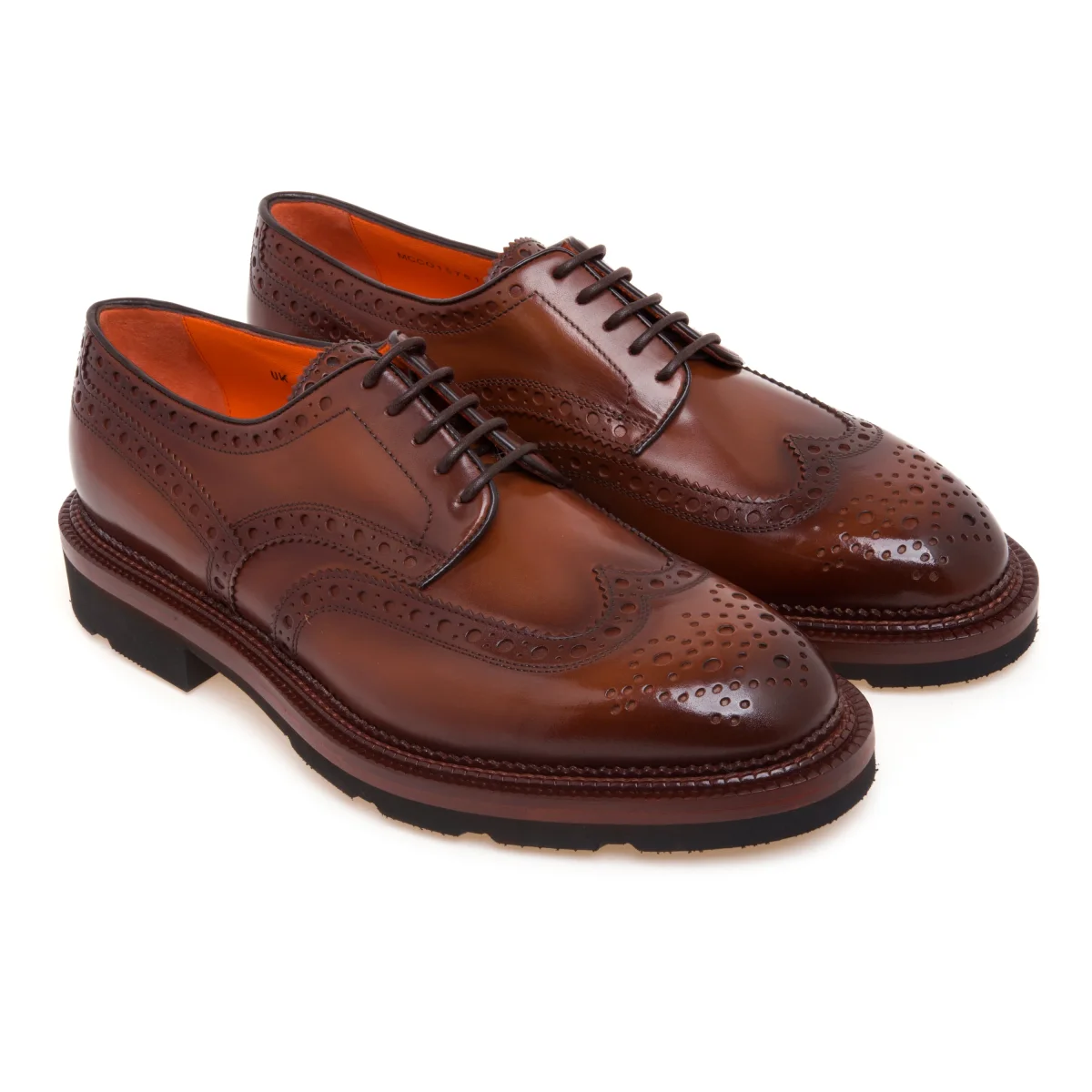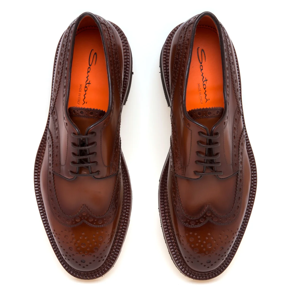 Questa versione di Santoni, realizzata in pelle anticata da look moderno ed accattivante, presenta una suola in cuoio con battistrada in gomma.