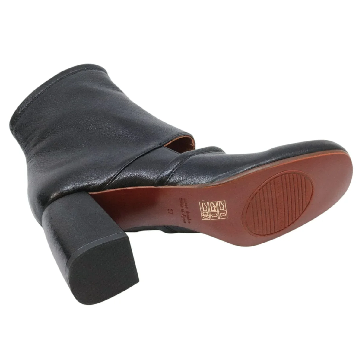 Tronchetto Chie Mihara Sonli da donna in pelle nera. L’altezza del tacco è di 7 cm. La fodera in pelle molto morbida garantisce comfort, mentre la chiusura è a zip laterale e permette una calzata facile. Il tacco è foderato in pelle, e la suola in cuoio è dotata di un inserto in gomma antiscivolo per una maggiore stabilità. Prodotto made in Spain. Modello Sonli Kimera Nero