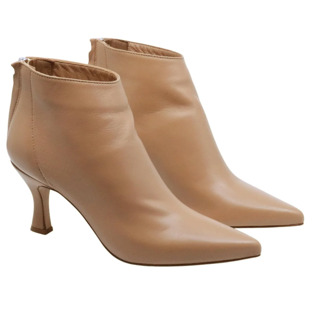 Tronchetto donna Ranyé 130 in pelle tek beige. La tomaia è in nappa molto morbida, orttimo stivaletto adatto a tutte le stagioni. La chiusura avviene grazie alla zip posteriore e suola in cuoio. Il tacco è alto 7,5 cm. Prodotto made in Italy. Modello 130 Nappa Cappuccino
