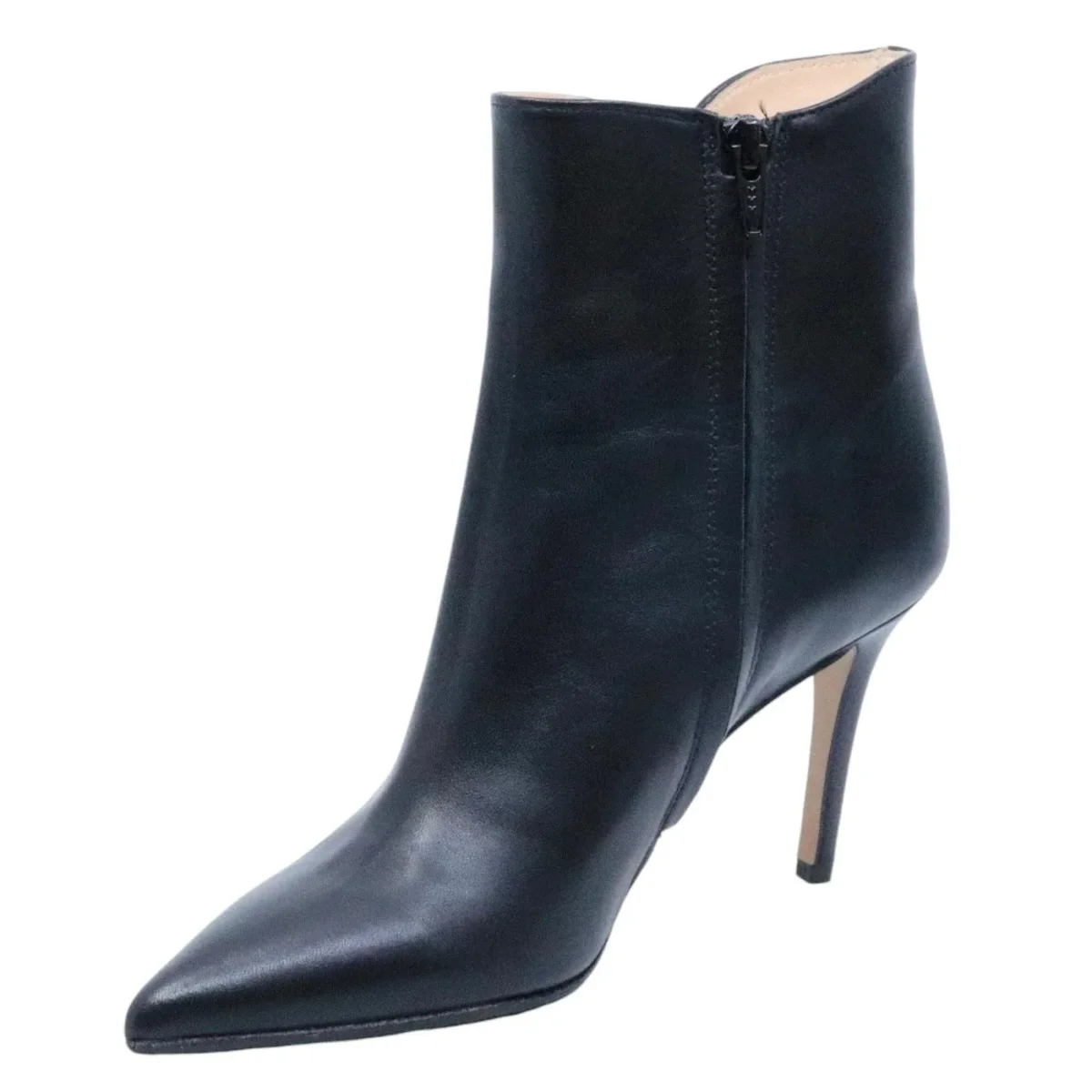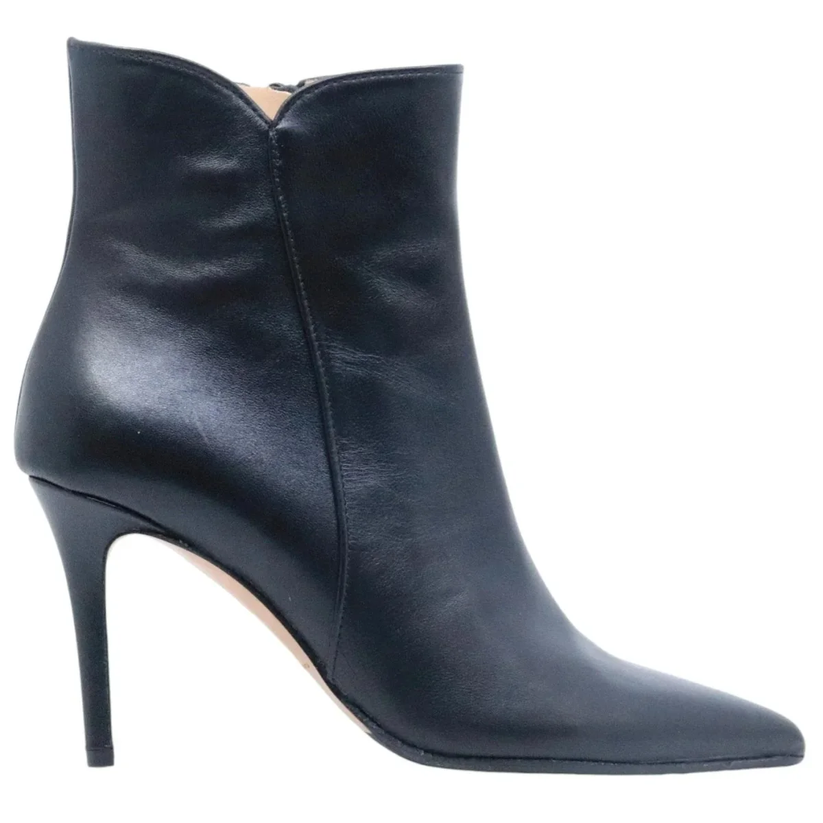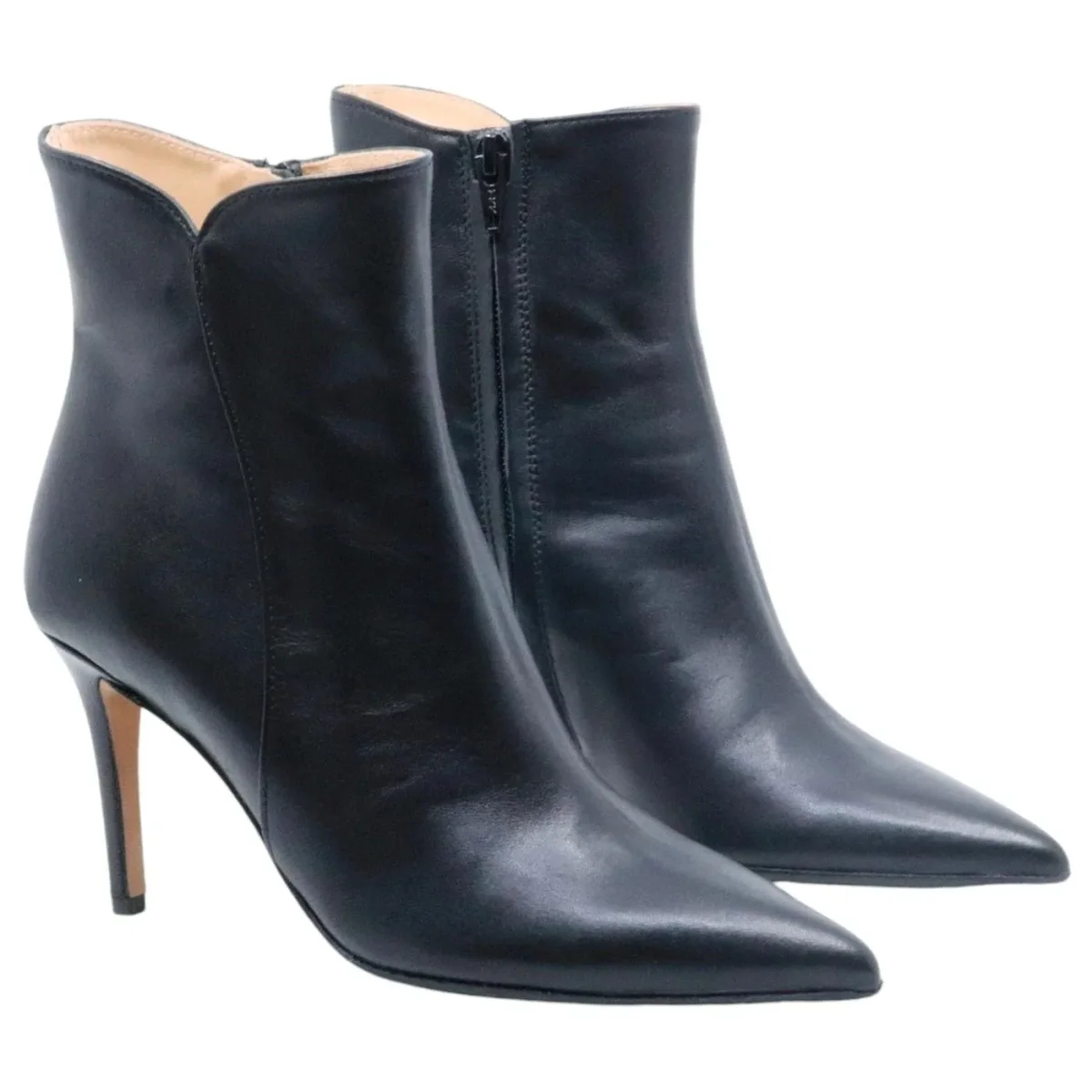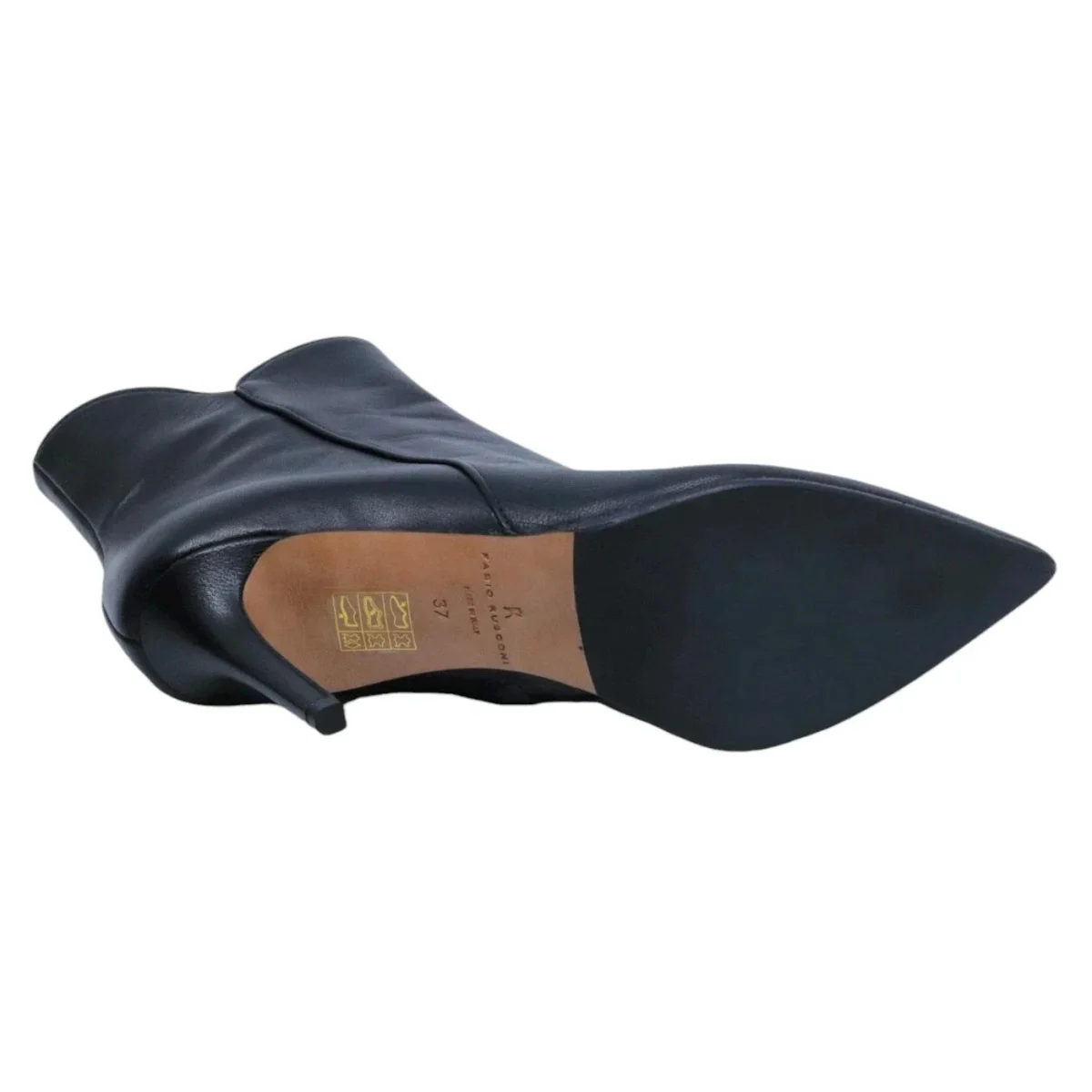 Tronchetto Fabio Rusconi Nick donna in pelle nera con zip laterale. La suola è in cuoio con mezza pianta in gomma e il tacco ha un’altezza di 8,5 cm. Prodotto made in Italy. Modello I-NICK-NATALY Nero